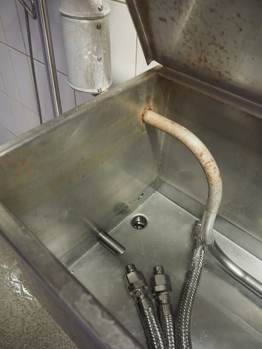 S/s wall mounted disinfection tub, dimensions: 1850 mm x 400 mm x 400 mm.