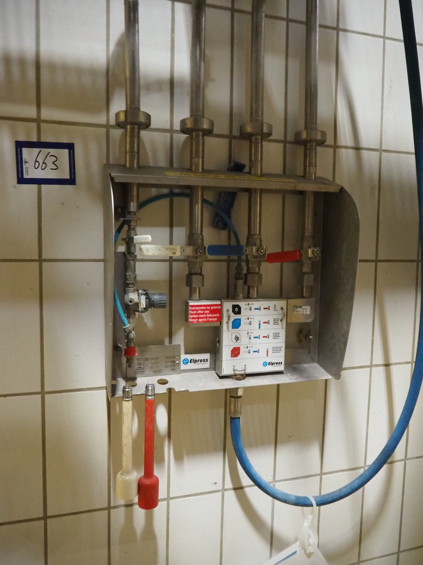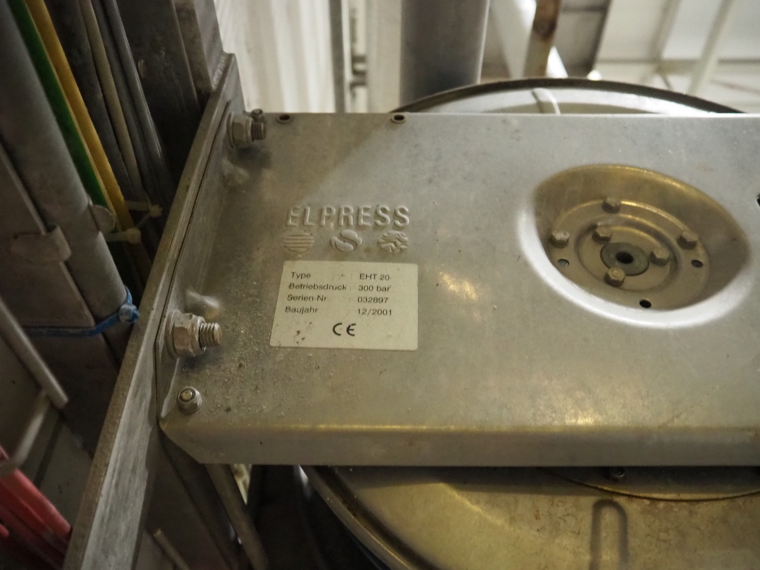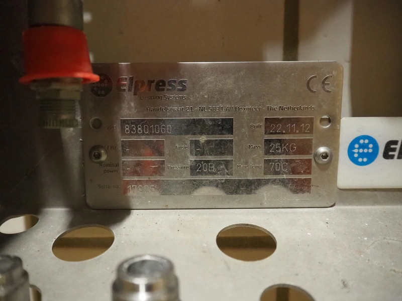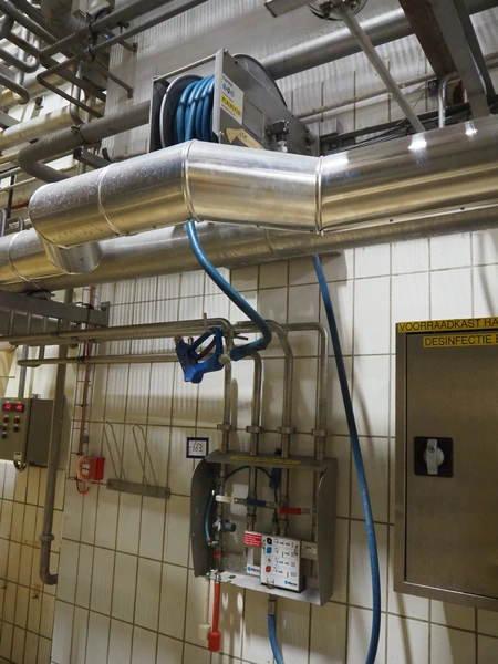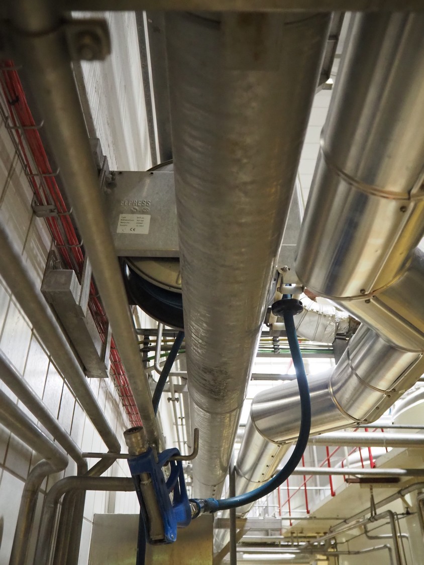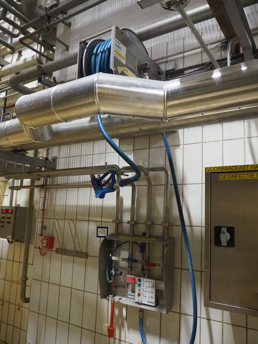 Elpress s/s hose reel with plastic hose, spray pistol and soap mixing station, type: EHT 20, dimensions: 600 mm x 20000 mm x 1520 mm.