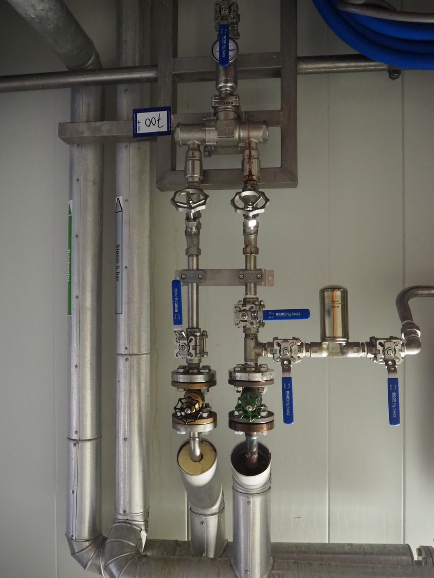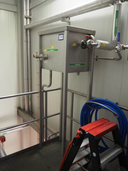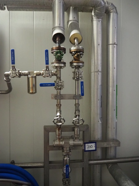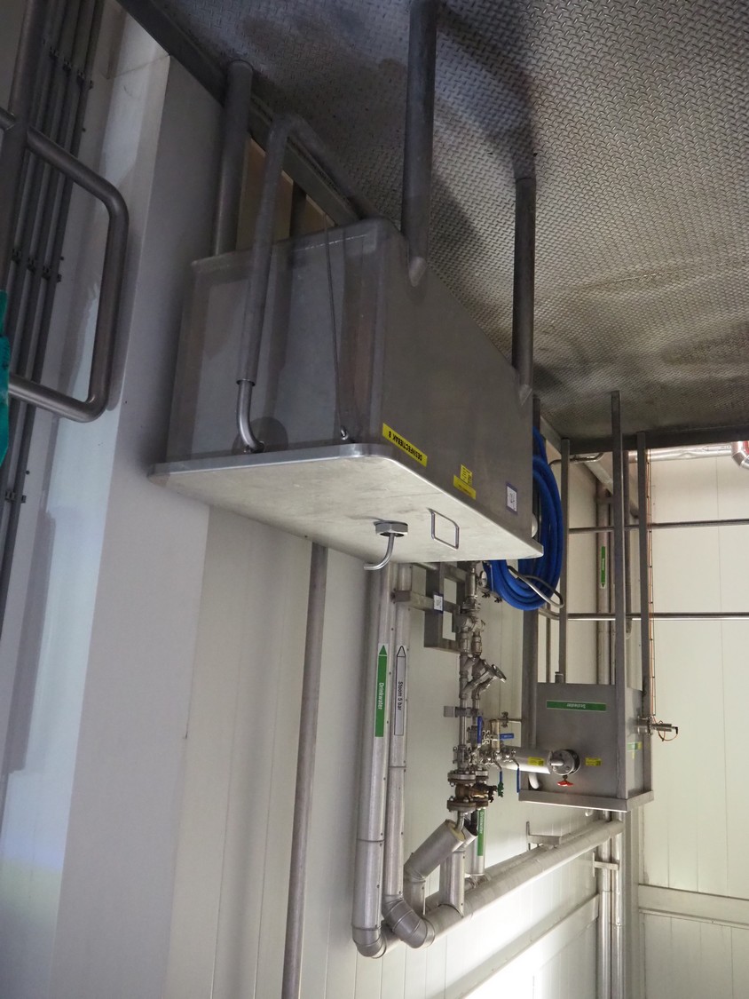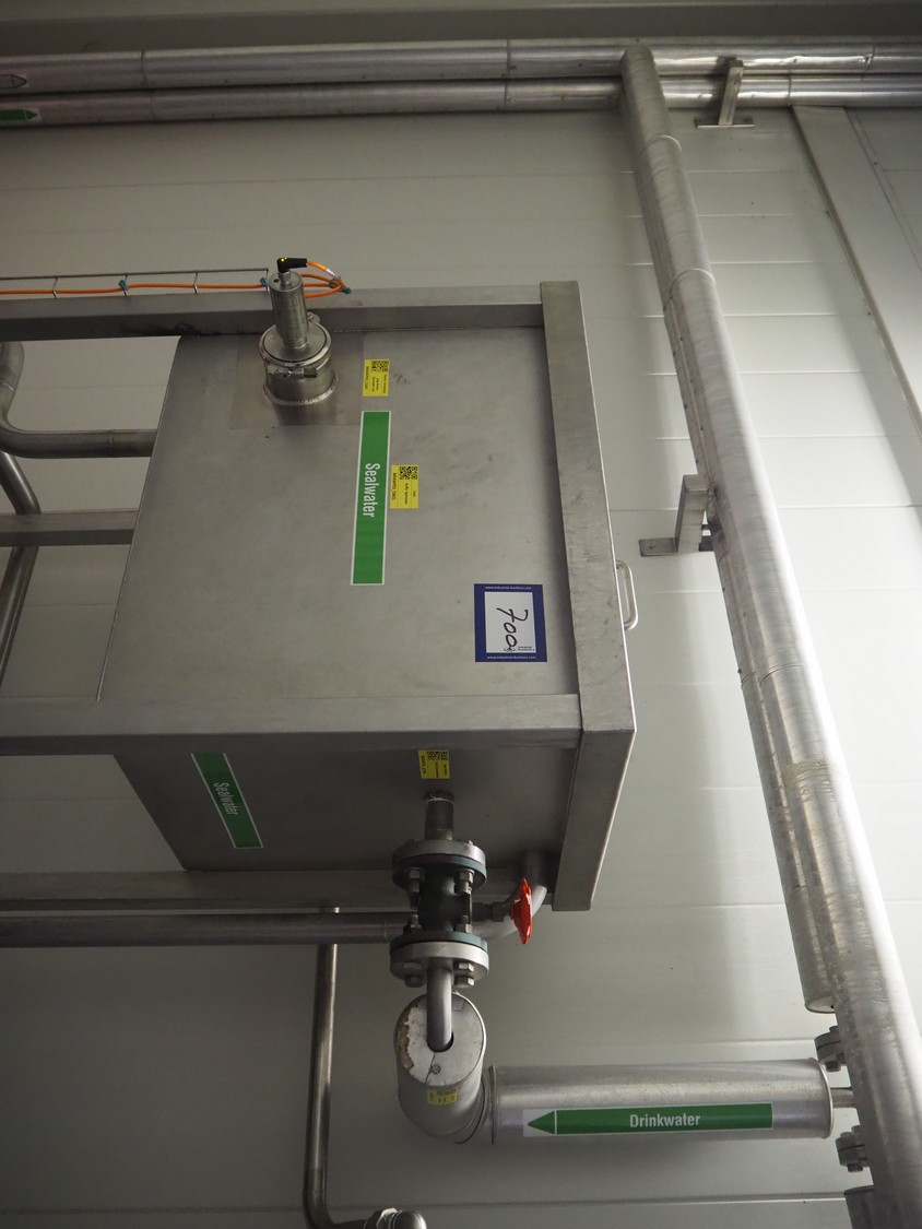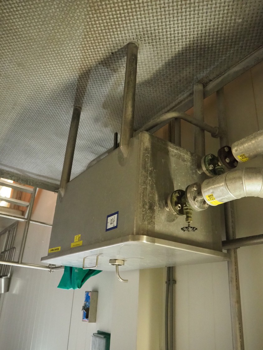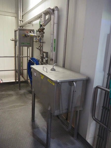 2 s/s disinfection tubs, dimensions: 1050 mm x 560 mm x 1100 mm, 800 mm x 600 mm x 1940 mm and valve system, dimensions: 500 mm x 300 mm x 1900 mm.