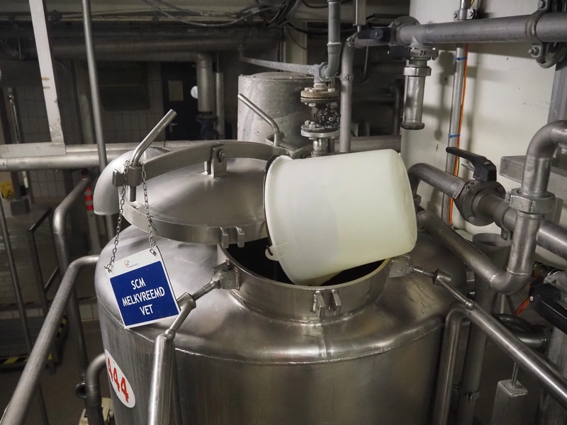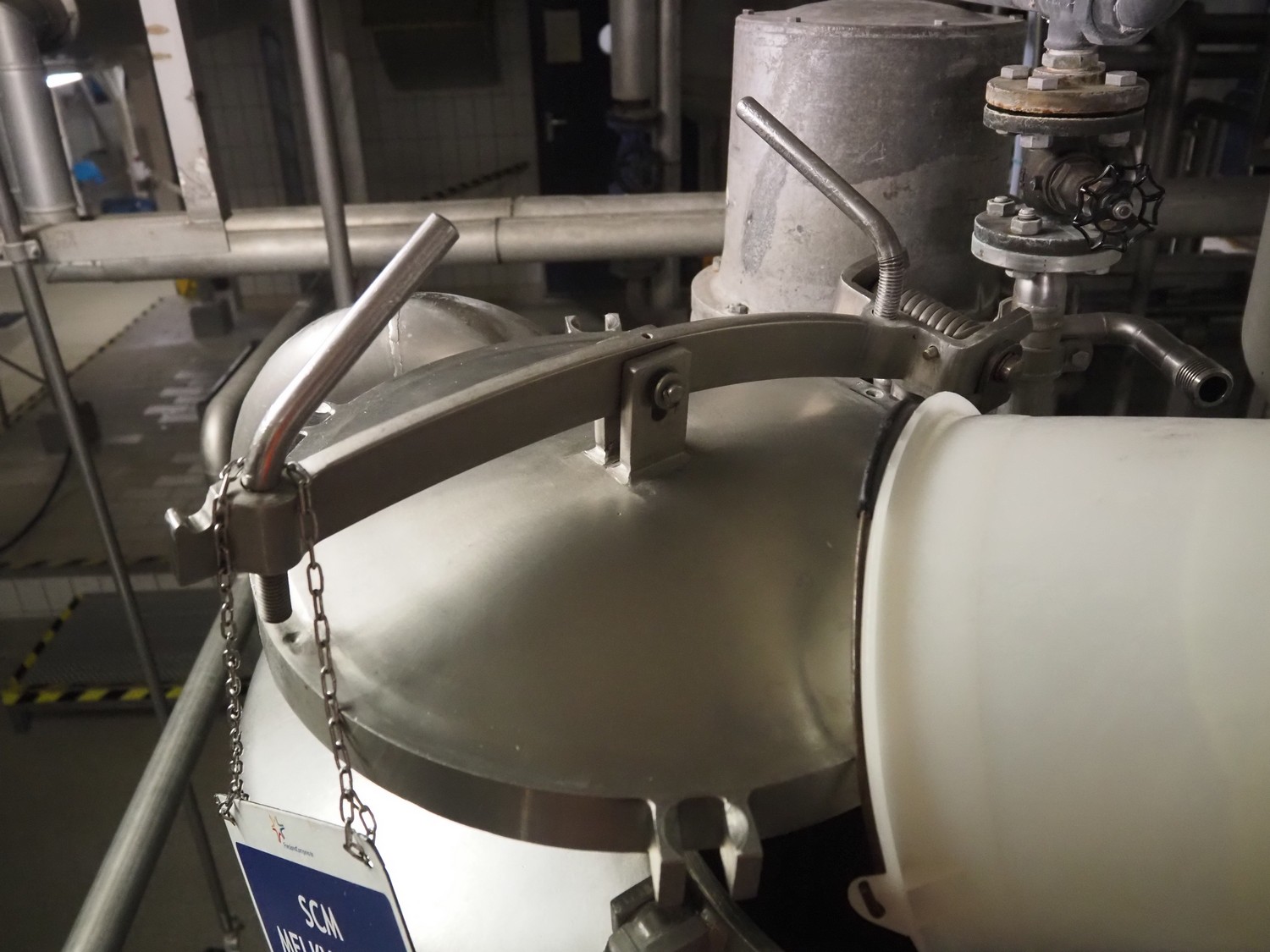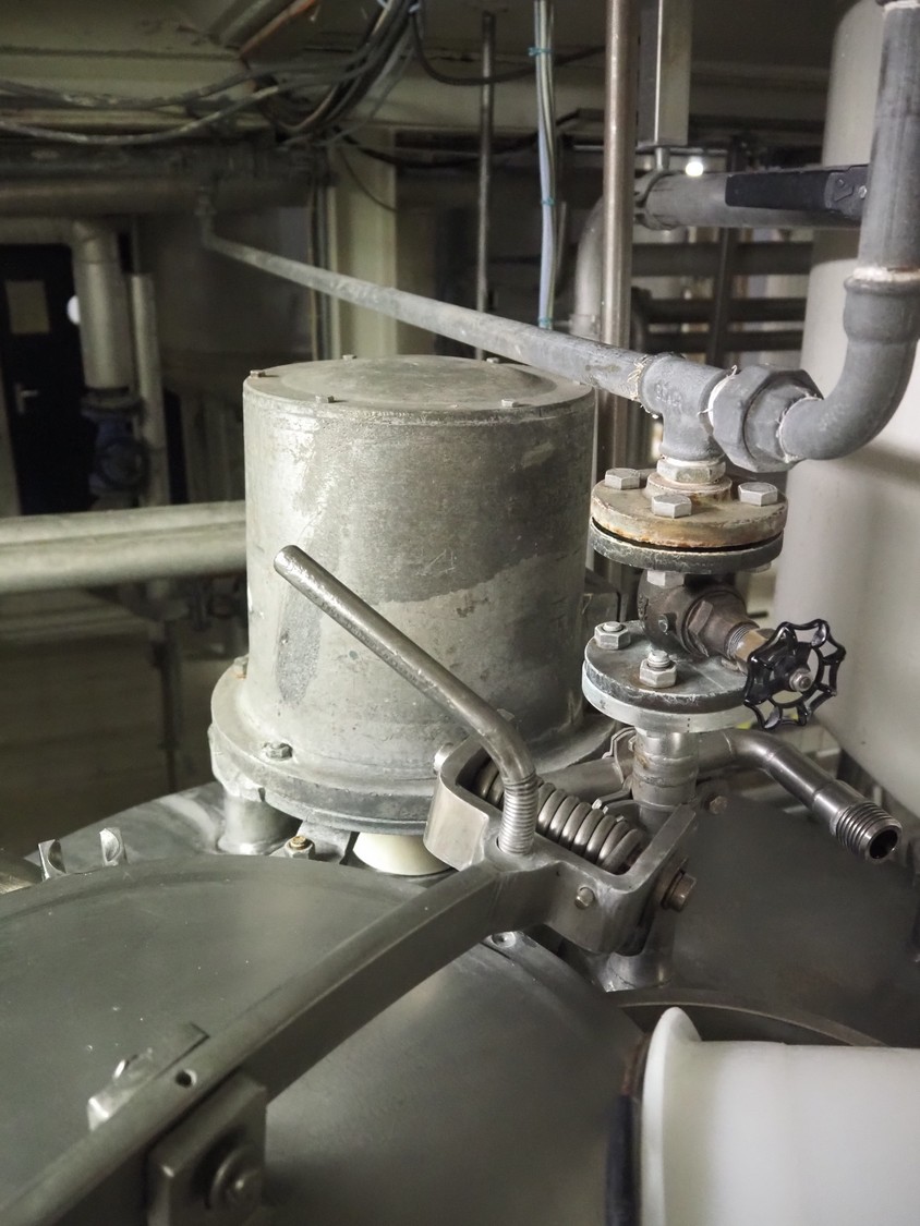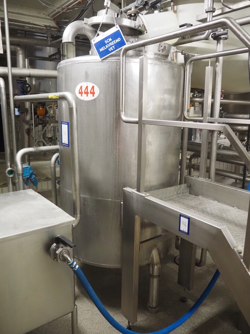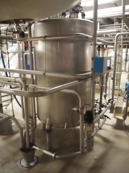 S/s tank, dimensions: ø 1200 mm x 2600 mm.