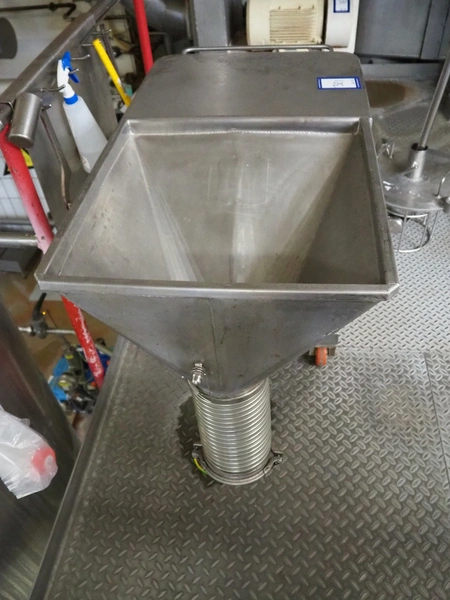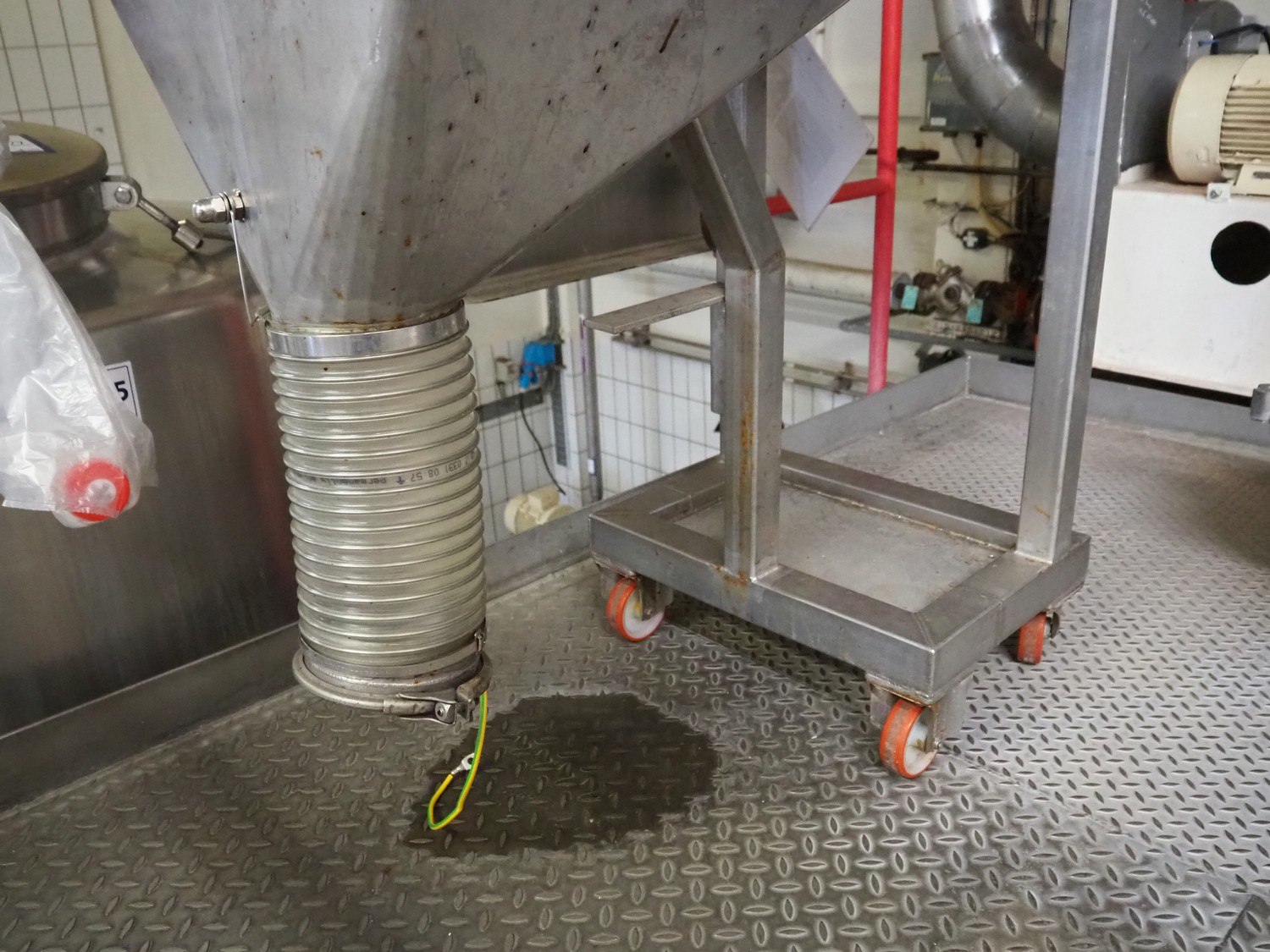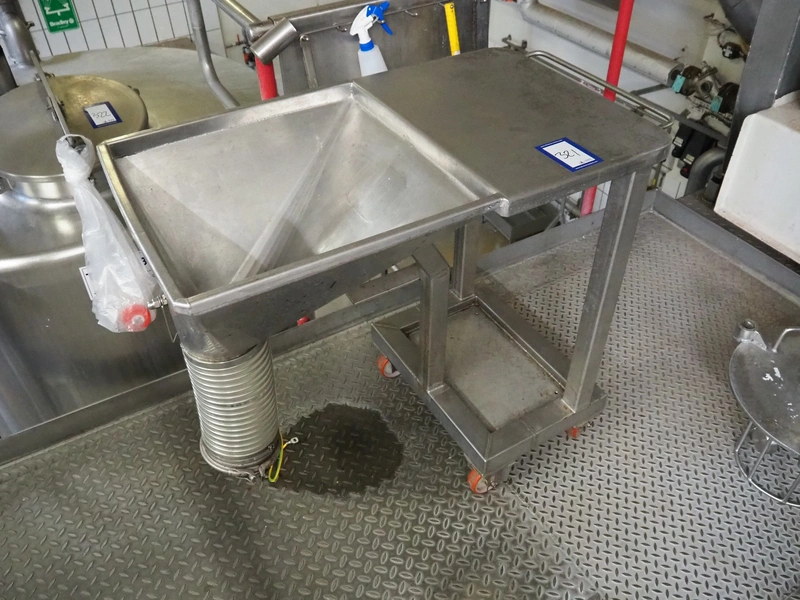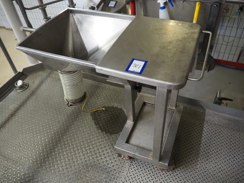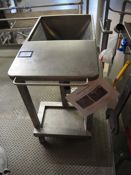 Mobile s/s unloading table, dimensions: 560 mm x 1000 mm x 900 mm.