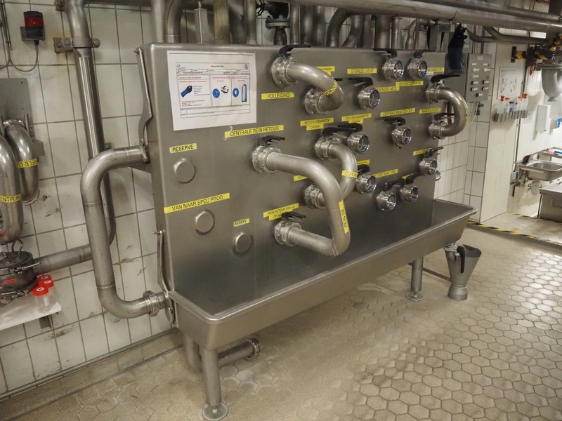 S/s flowboard, dimensions: 2100 mm x 400 mm x 1850 mm.