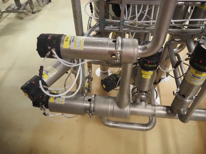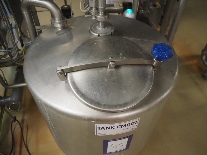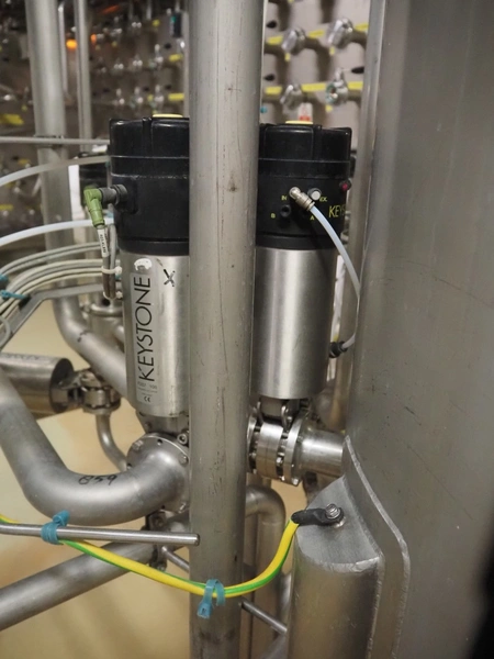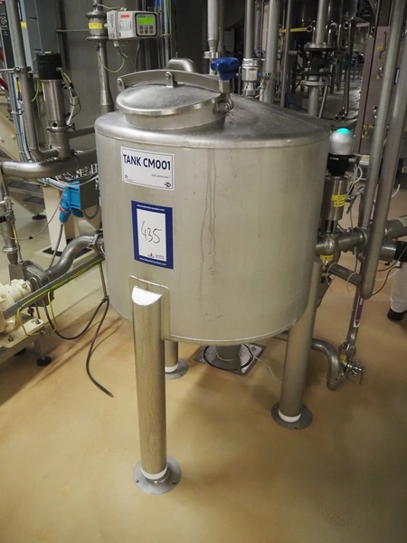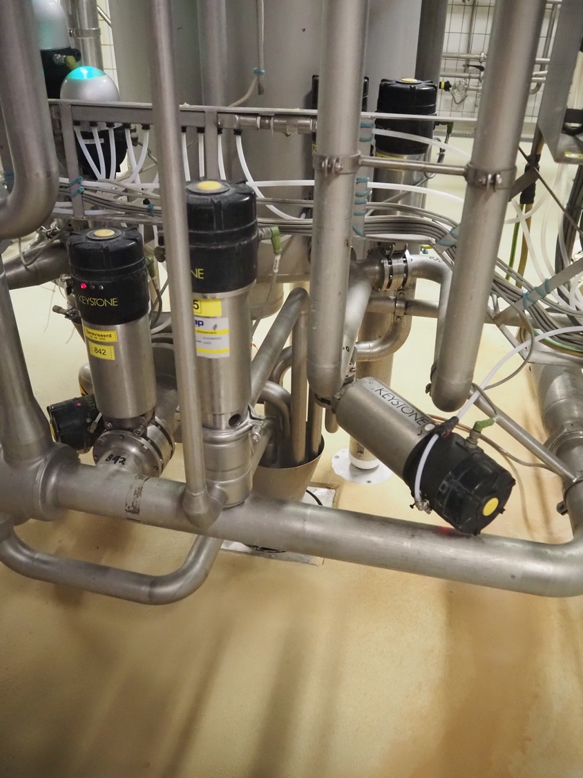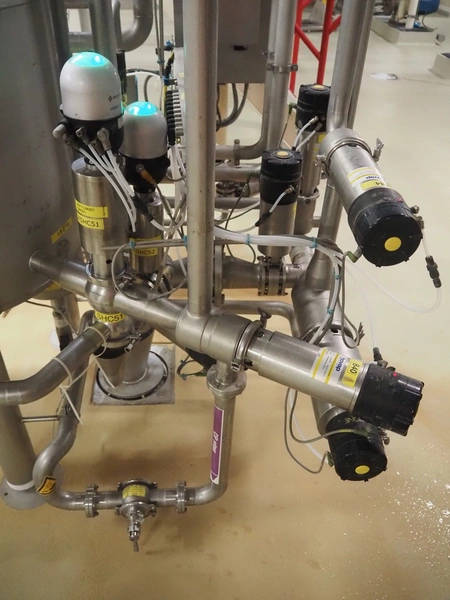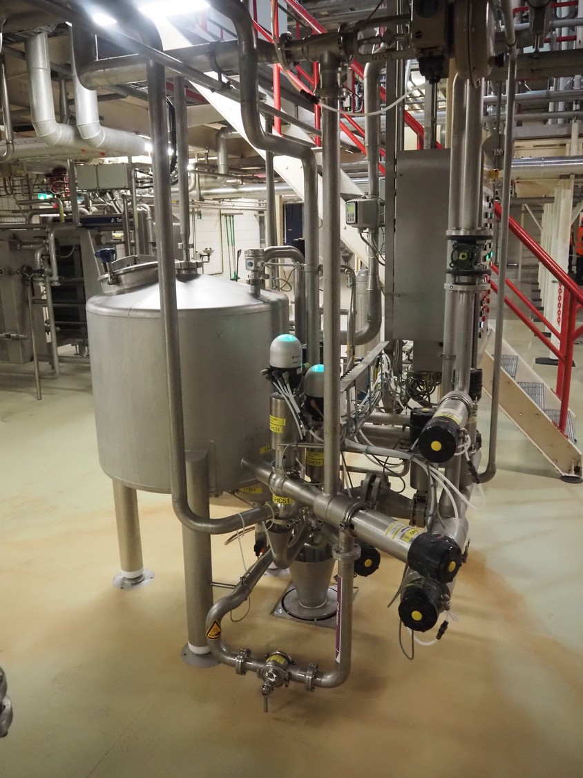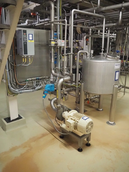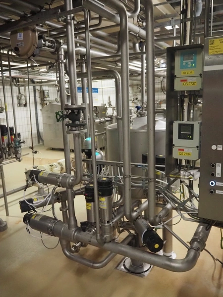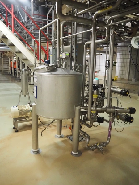 CIP retour installation consisting of s/s tank, various Hovap valves, Siemens flowmeter, Fristam centrifugal pump, Samson valves and Danfoss frequency converter.