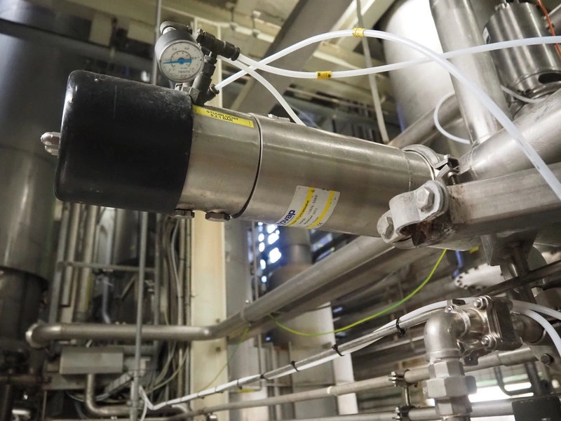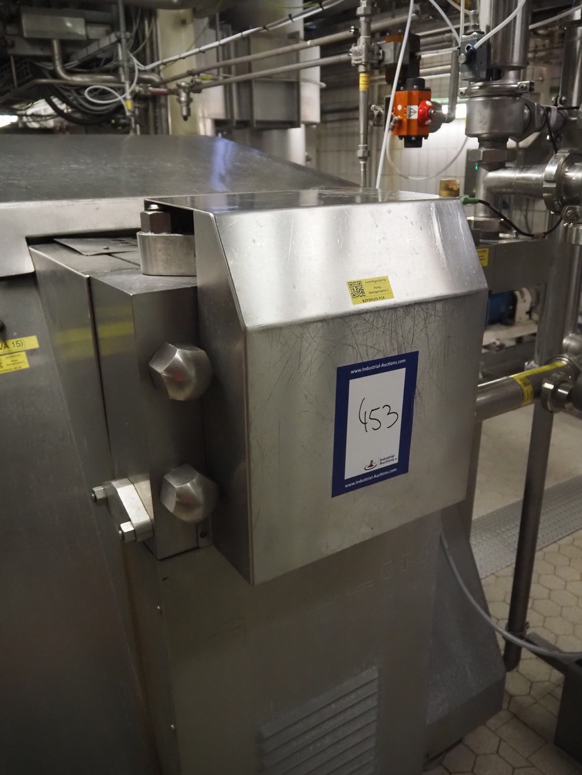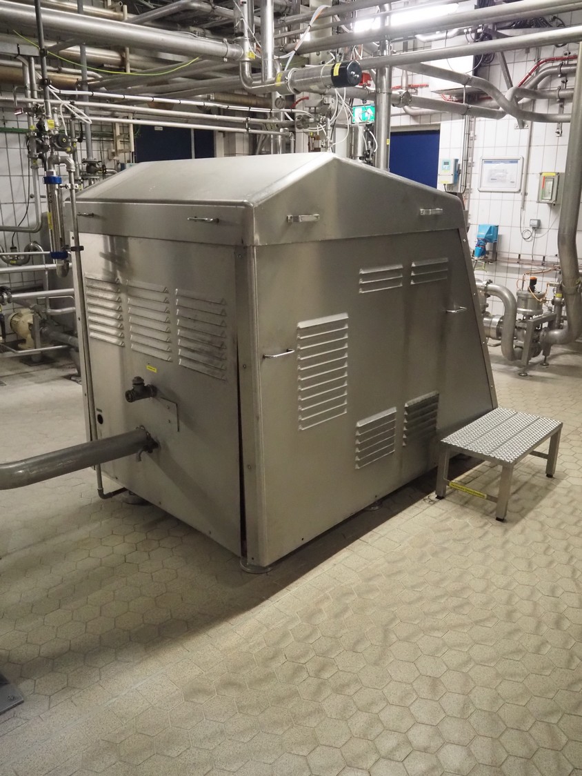APV Gaulin homogeniser, dimensions: 2100 mm x 1750 mm x 1630 mm.