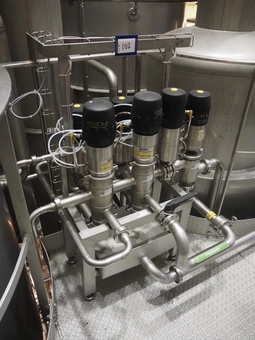 Manifold with 7 Keystone valves with Fristam centrifugal pump, dimensions: 1700 mm x 1300 mm x 800 mm.€ 175,000 bids18/06/2026 14:50 -