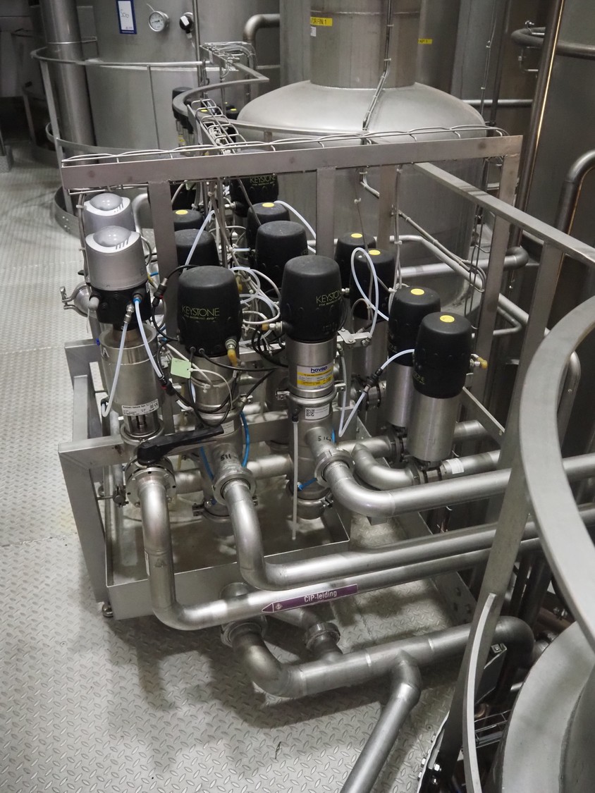 Hovap/Bardiani Valvole Spa manifold, 14 butterfly valves, type Bardiani Valvole Spa valves: BBZP, type Hovap valves: 8722, dimensions: 1000 mm x 900 mm x 1240 mm.