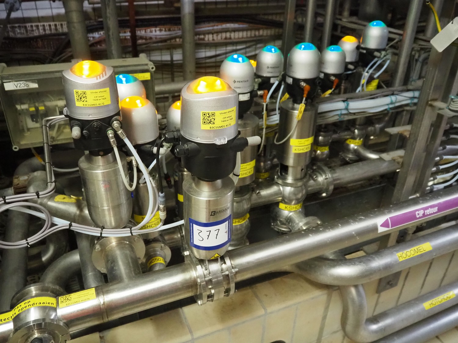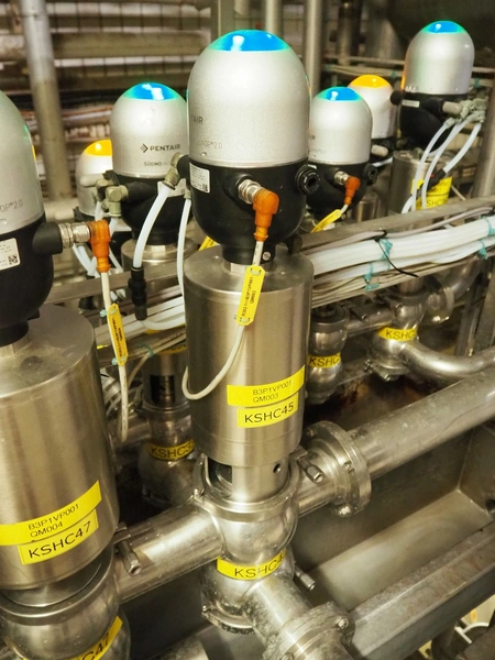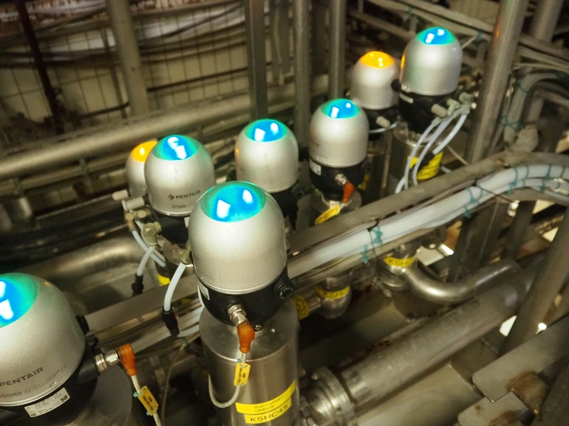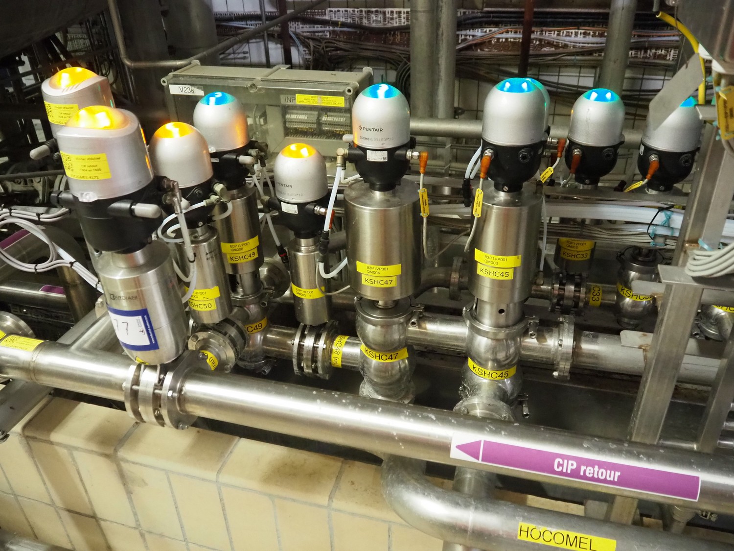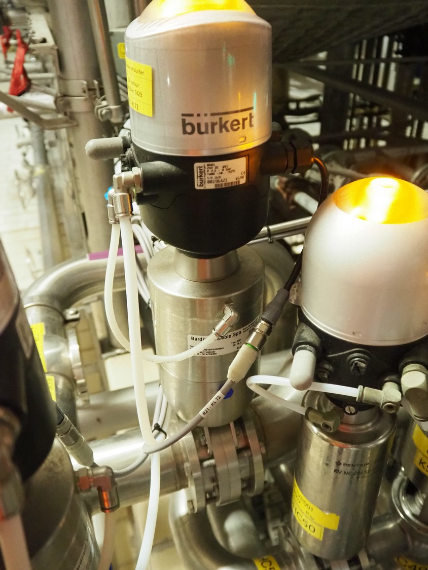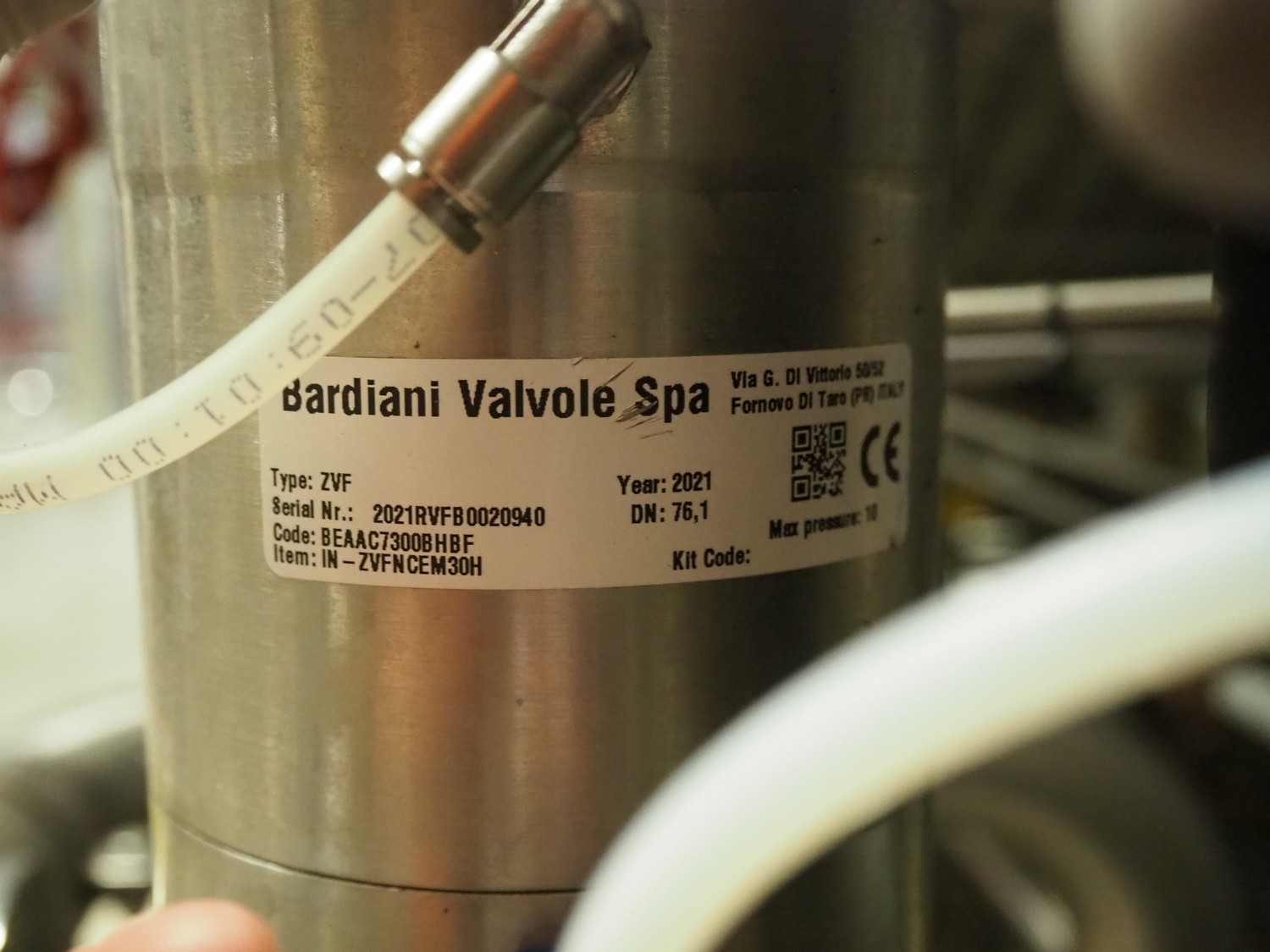 Manifold with approximately 13 Bardiani Valvole Spa/Pentair valves with Bürkert control heads, dimensions: 1400 mm x 900 mm x 800 mm.