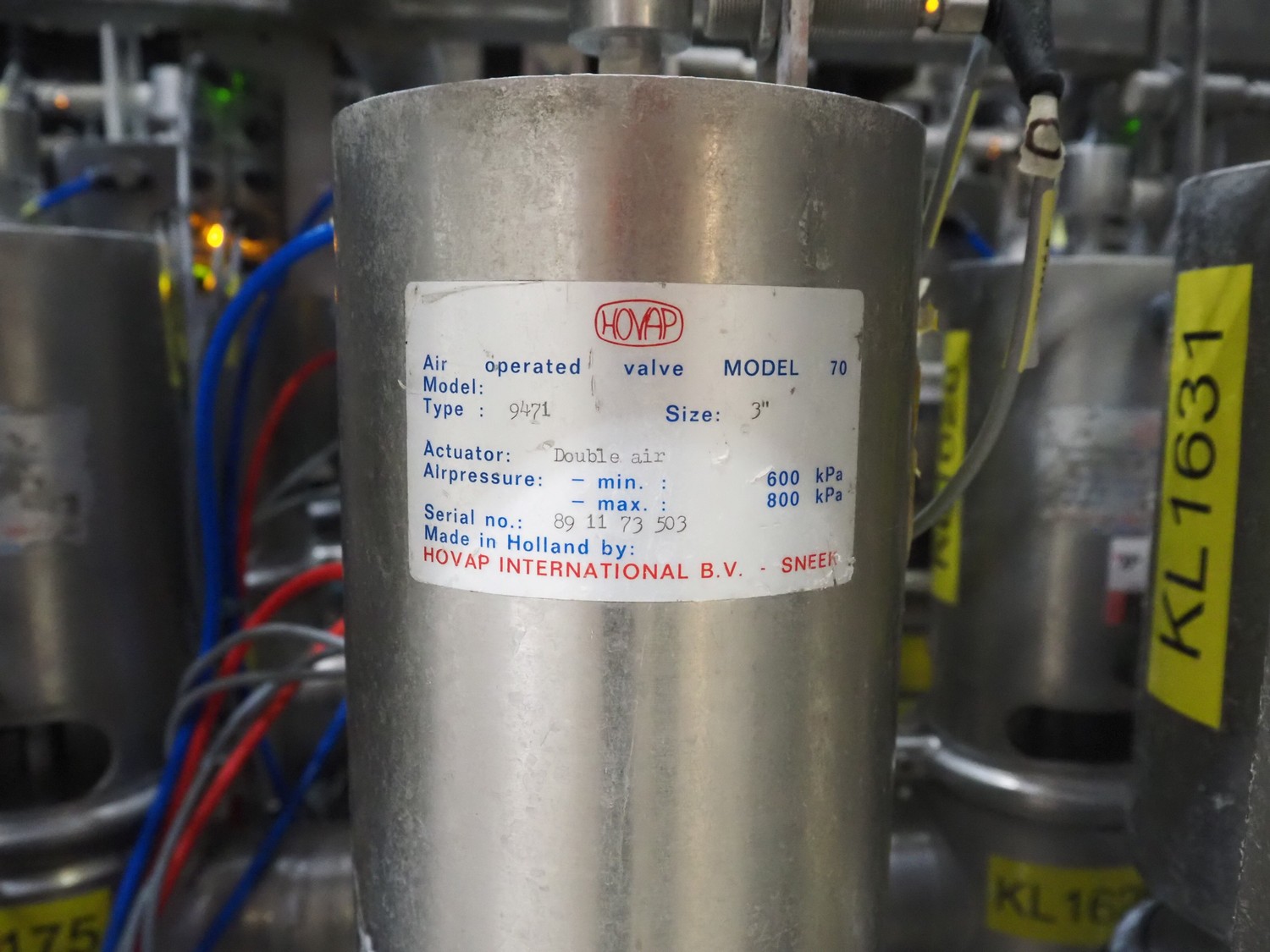 Manifold with large amount of Hovap valves, dimensions: 3300 mm x 2100 mm x 1300 mm.