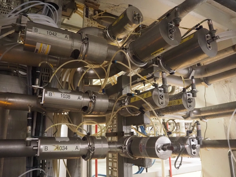 Manifold with large amount of Hovap valves, dimensions: 1300 mm x 700 mm x 1900 mm.