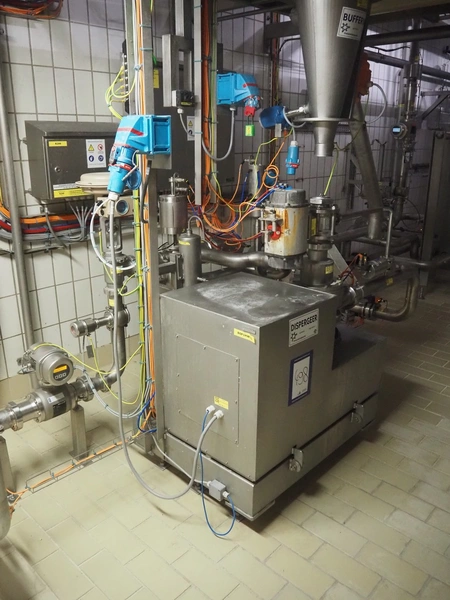 Inline disperser, dimensions: 1000 mm x 800 mm x 1400 mm. Including various flowmeters and valves.