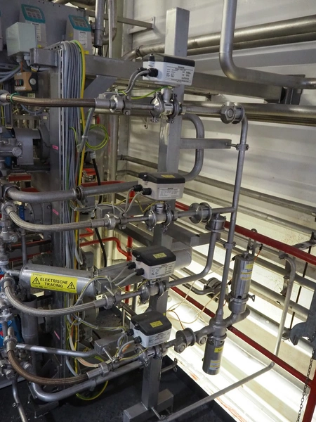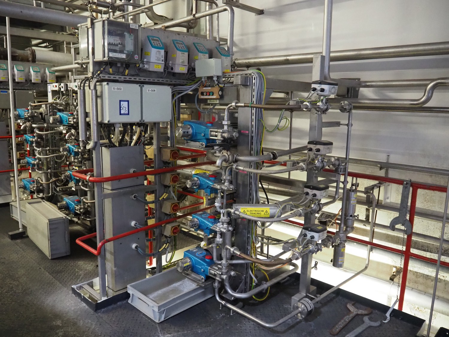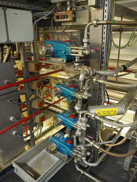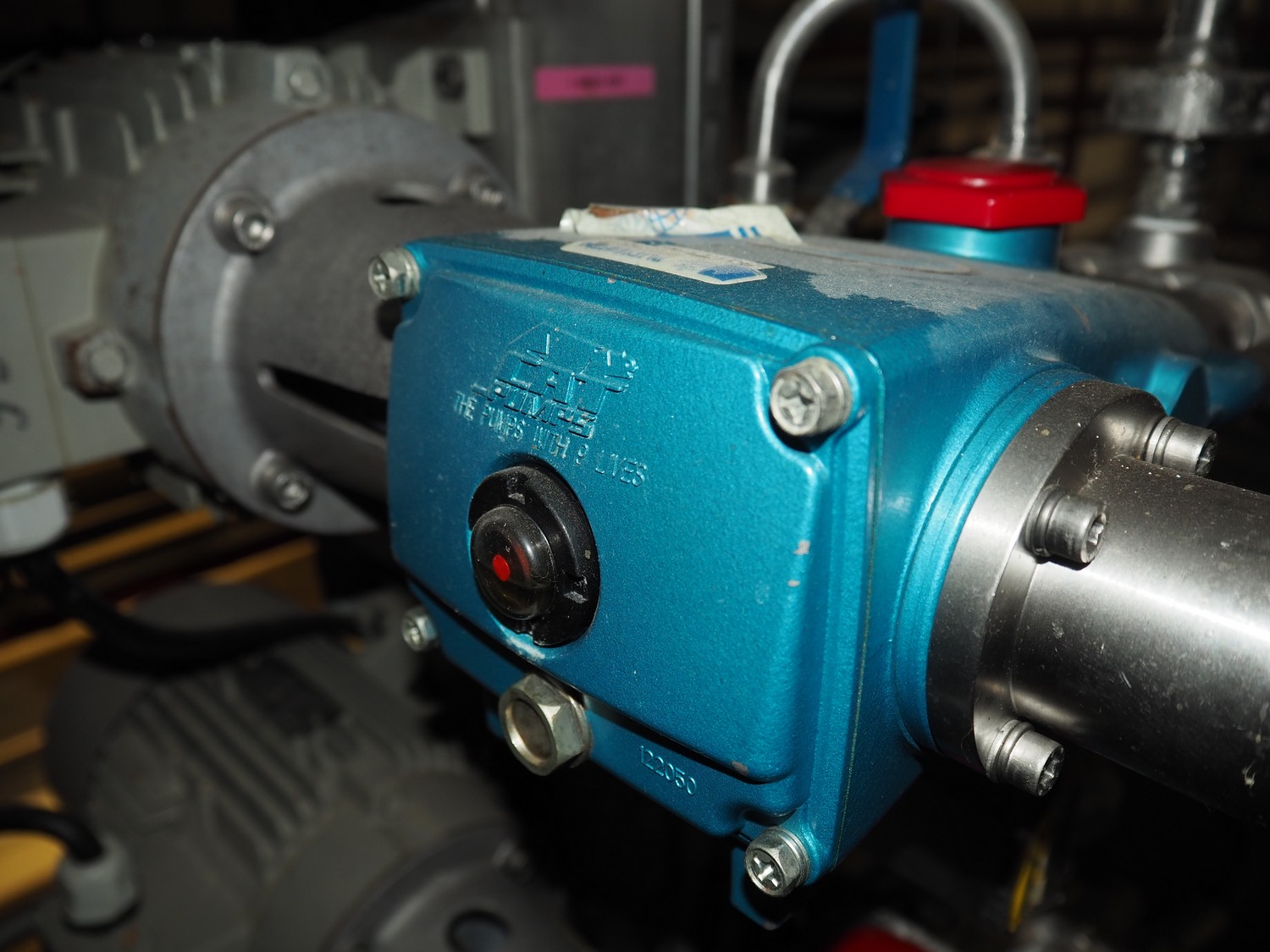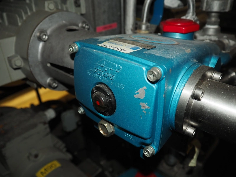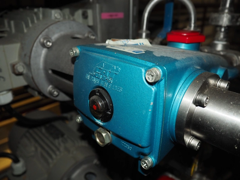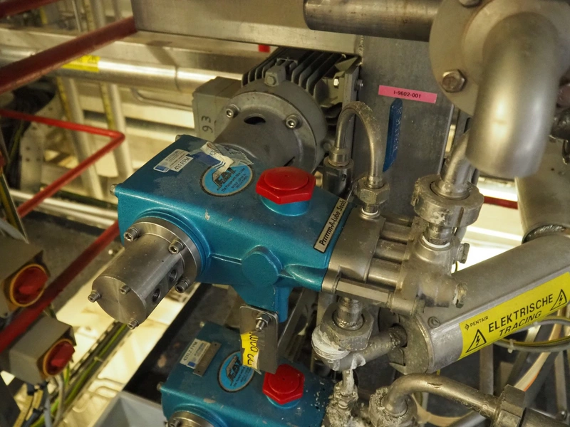 Blender installation consisting of 4 Cat Pumps high pressure positive displacement triplex piston pumps and 4 Siemens flowmeters, type: (3x) SITRANS F M MAG 1100 F, SITRANS FM MAGFLO MAG 1100 FOOD, total dimensions: 1500 mm x 1200 mm x 2050 mm.