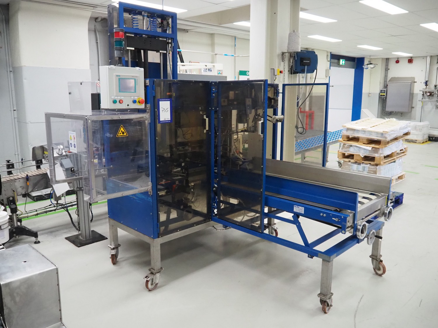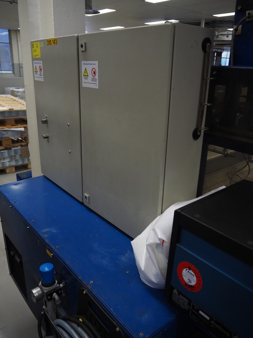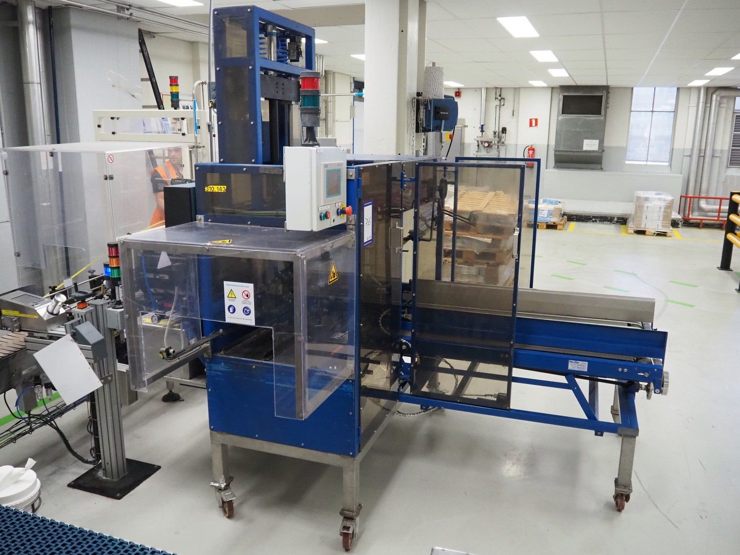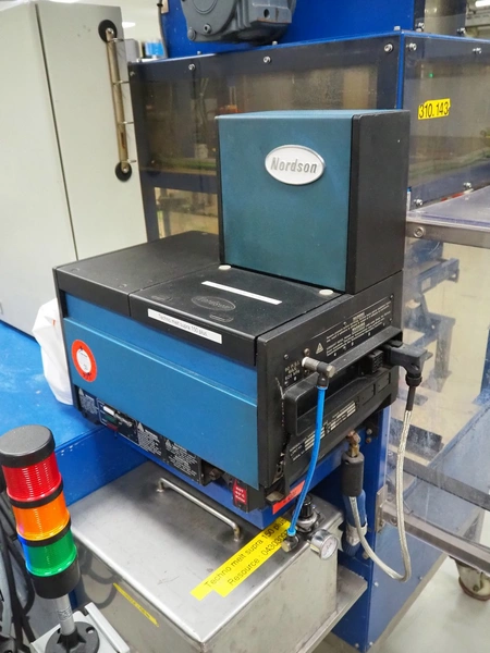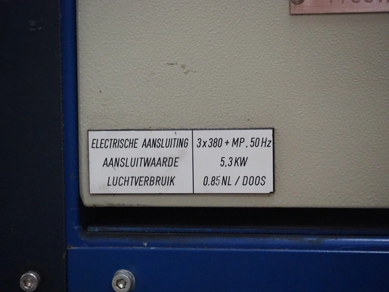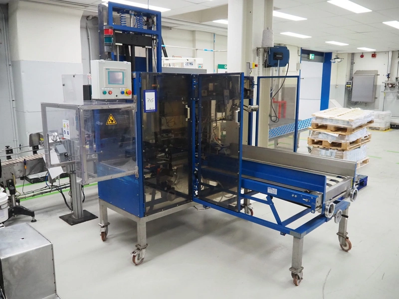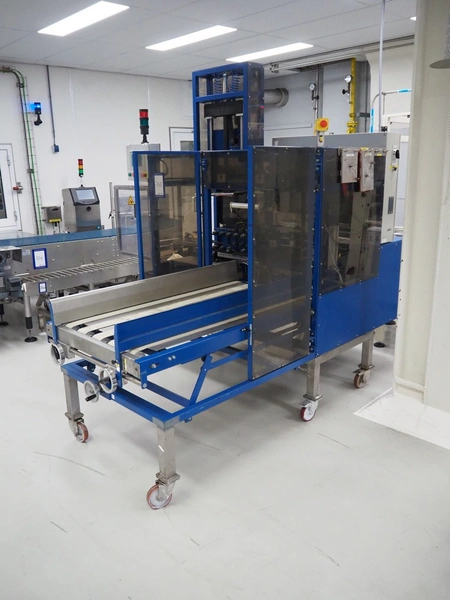 Narviflex mobile carton erector, Nordson glue unit, total dimensions: 2800 mm x 2300 mm x 2400 mm.