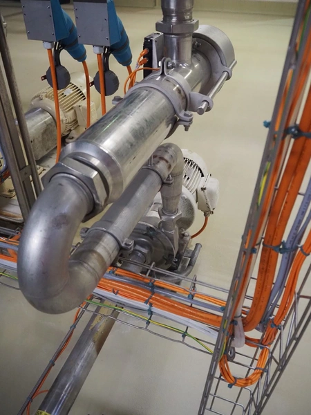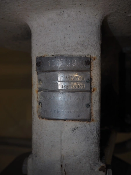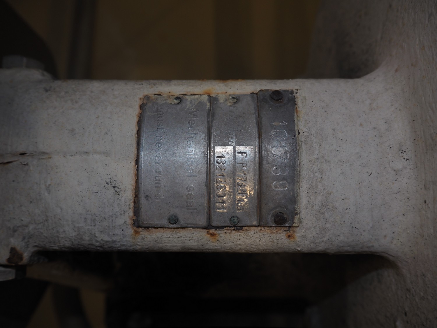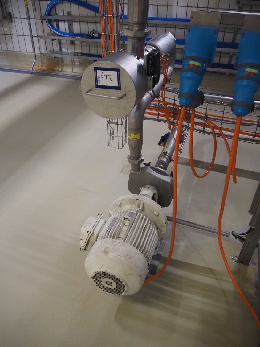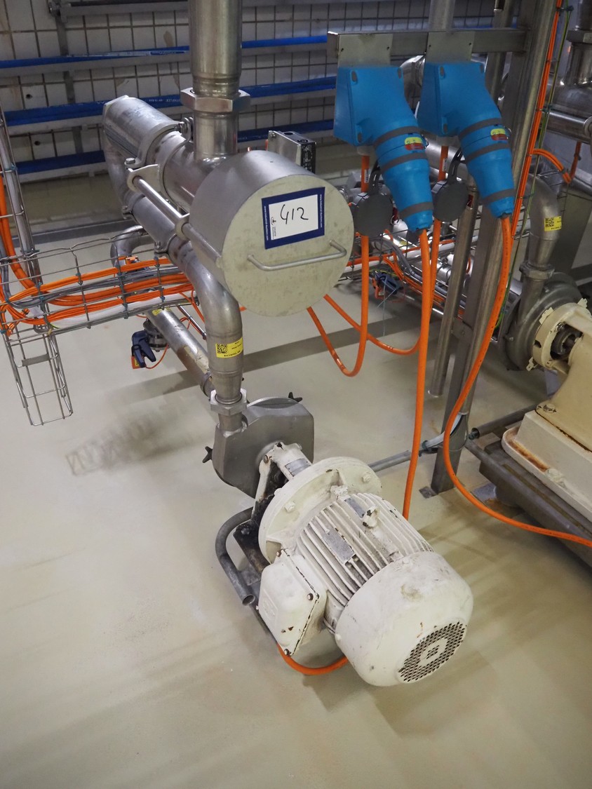 Fristam centrifugal pump with s/s filter, type: FP1732F165, serial number: 132126011, dimensions: 1400 mm x 400 mm x 1200 mm.