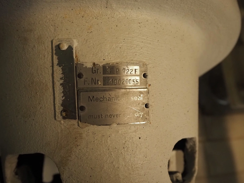 Fristam centrifugal pump, type: FP 722F, dimensions: 900 mm x 450 mm x 650 mm.