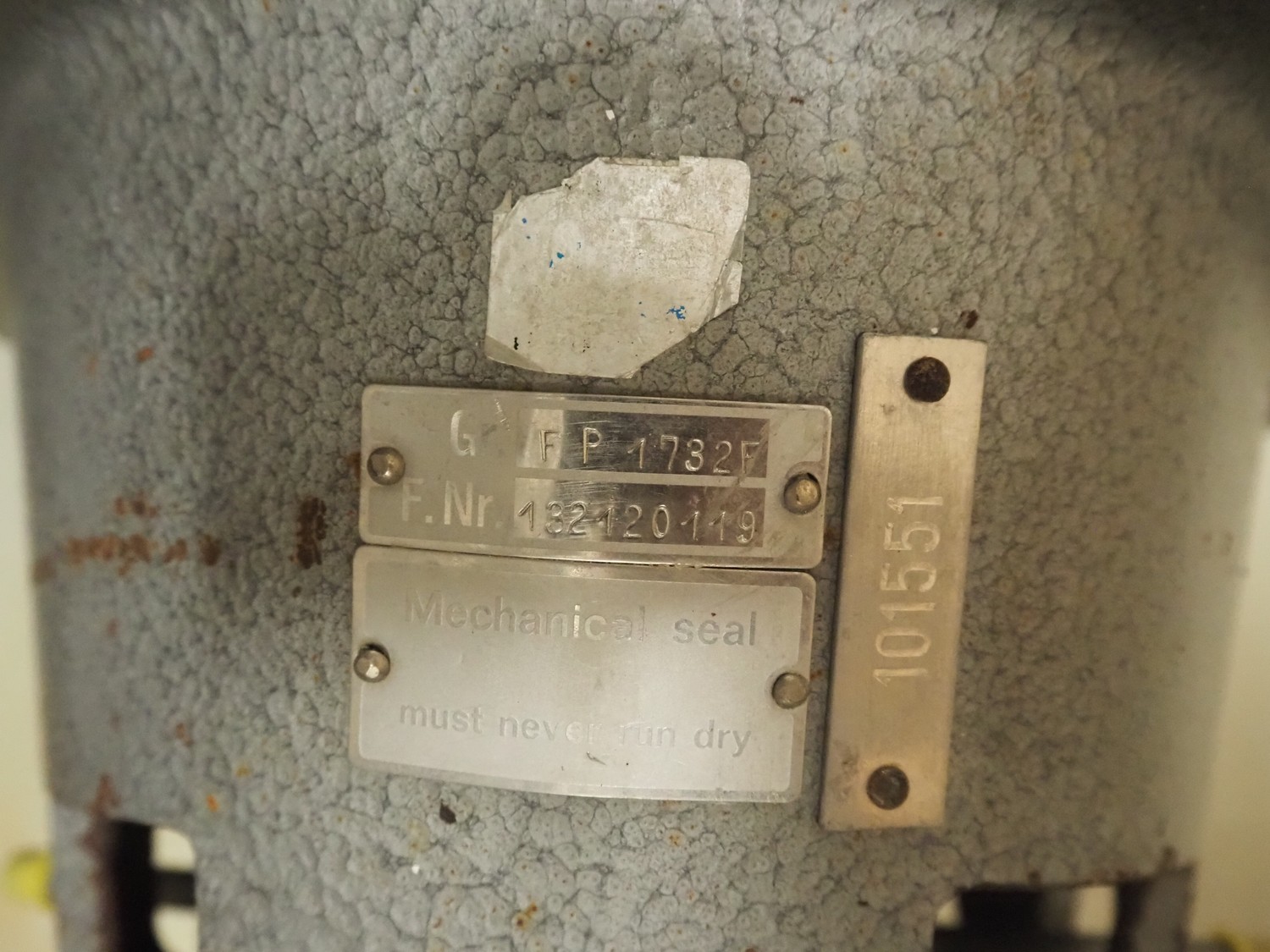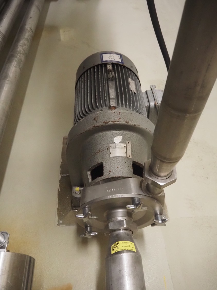 Fristam centrifugal pump, type: FP 1732F, dimensions: 800 mm x 450 mm x 530 mm.