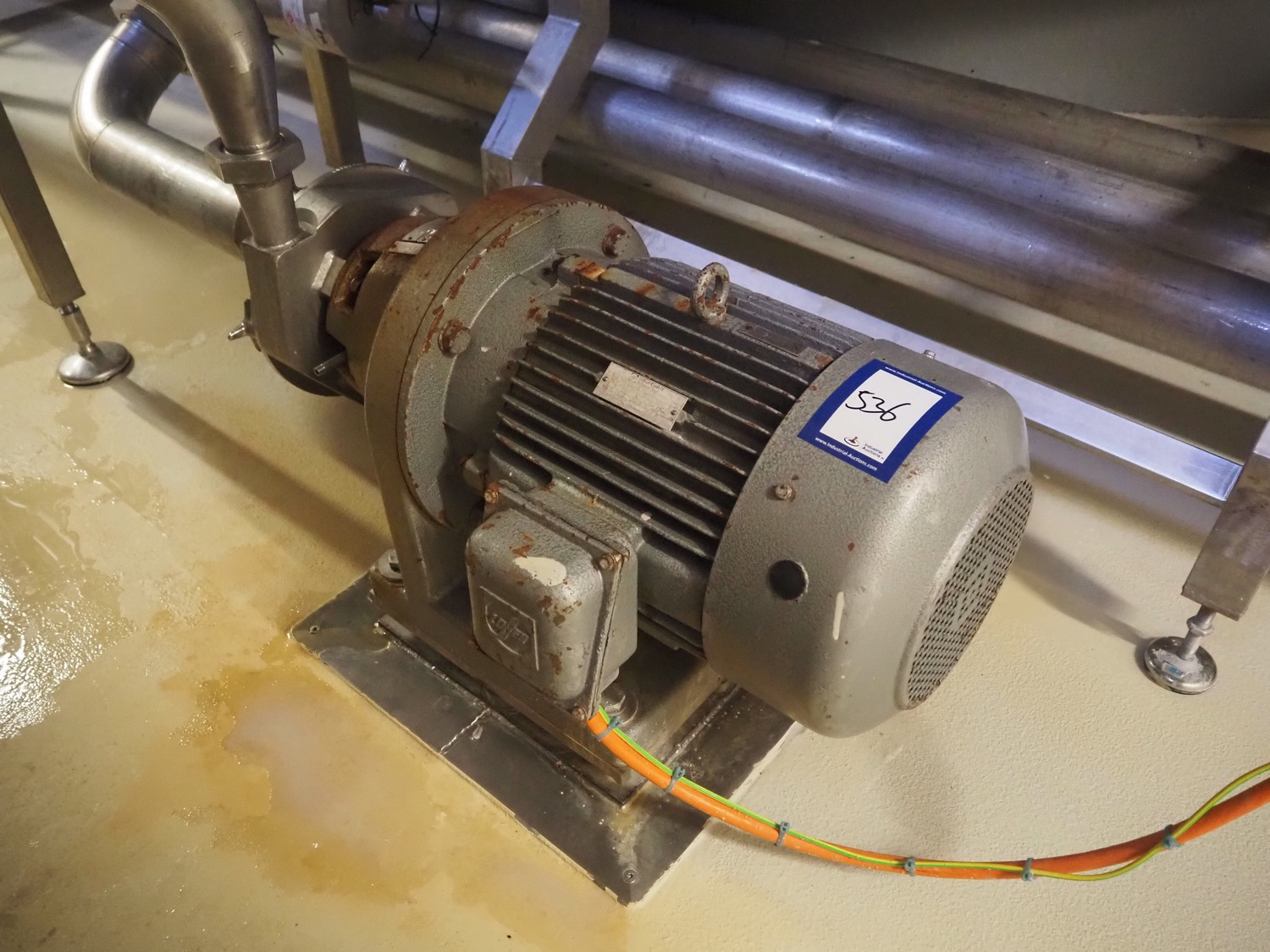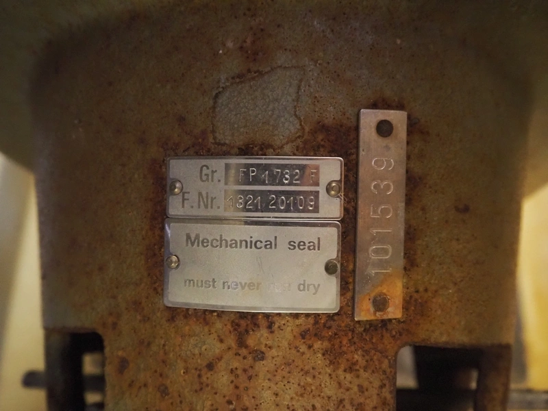 Fristam centrifugal pump, type: FP 1732F, dimensions: 800 mm x 450 mm x 530 mm.