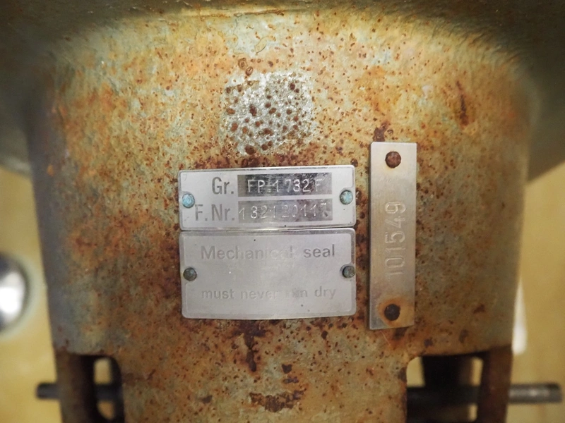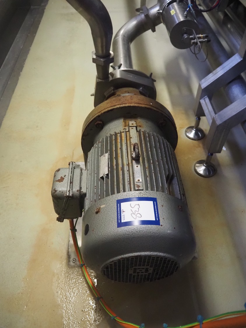 Fristam centrifugal pump, type: FP 1732F, dimensions: 800 mm x 450 mm x 530 mm.