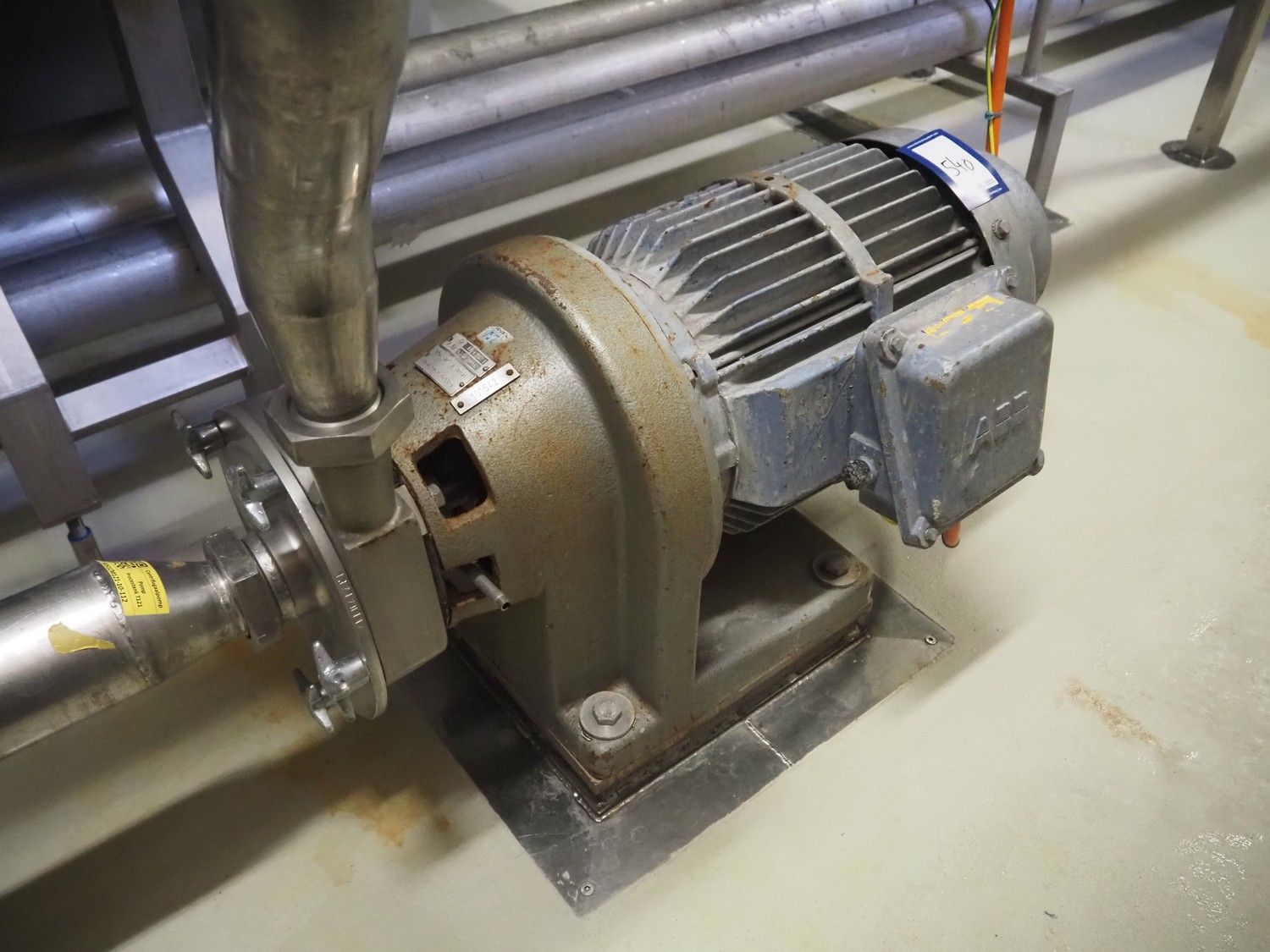 Fristam centrifugal pump, type: FP 1732F, dimensions: 800 mm x 450 mm x 530 mm.