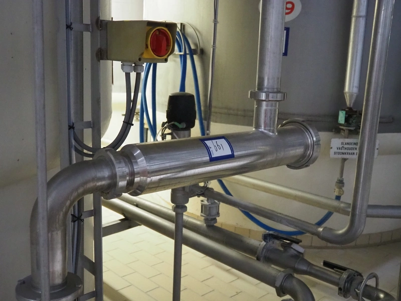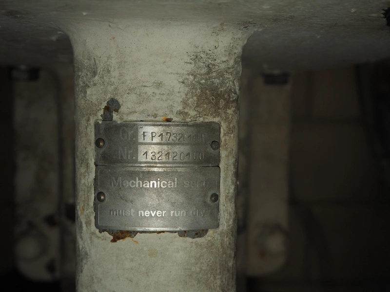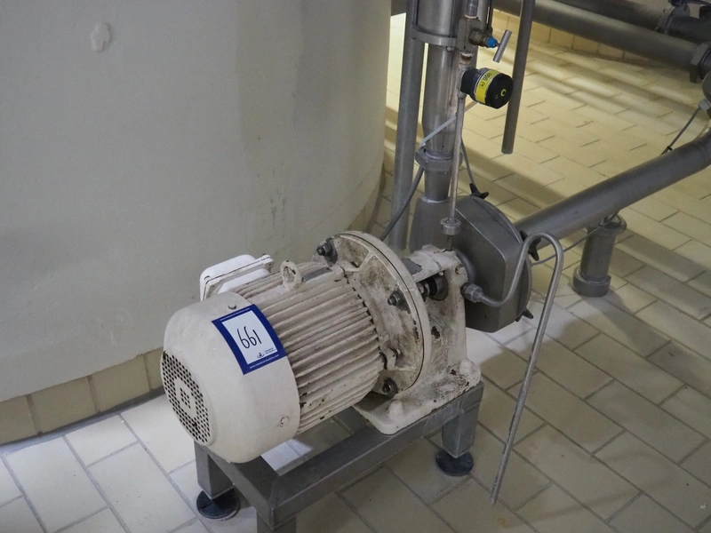 Fristam centrifugal pump with filter, type: FP 1732/155F, dimensions: 800 mm x 150 mm x 250 mm, 1600 mm x 400 mm x 1450 mm.
