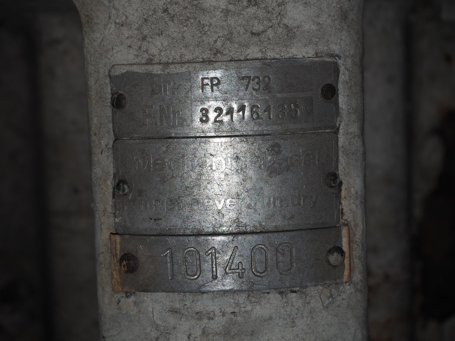 Fristam centrifugal pump, type: FP 732, dimensions: 650 mm x 300 mm x 400 mm.