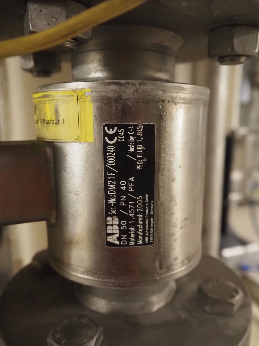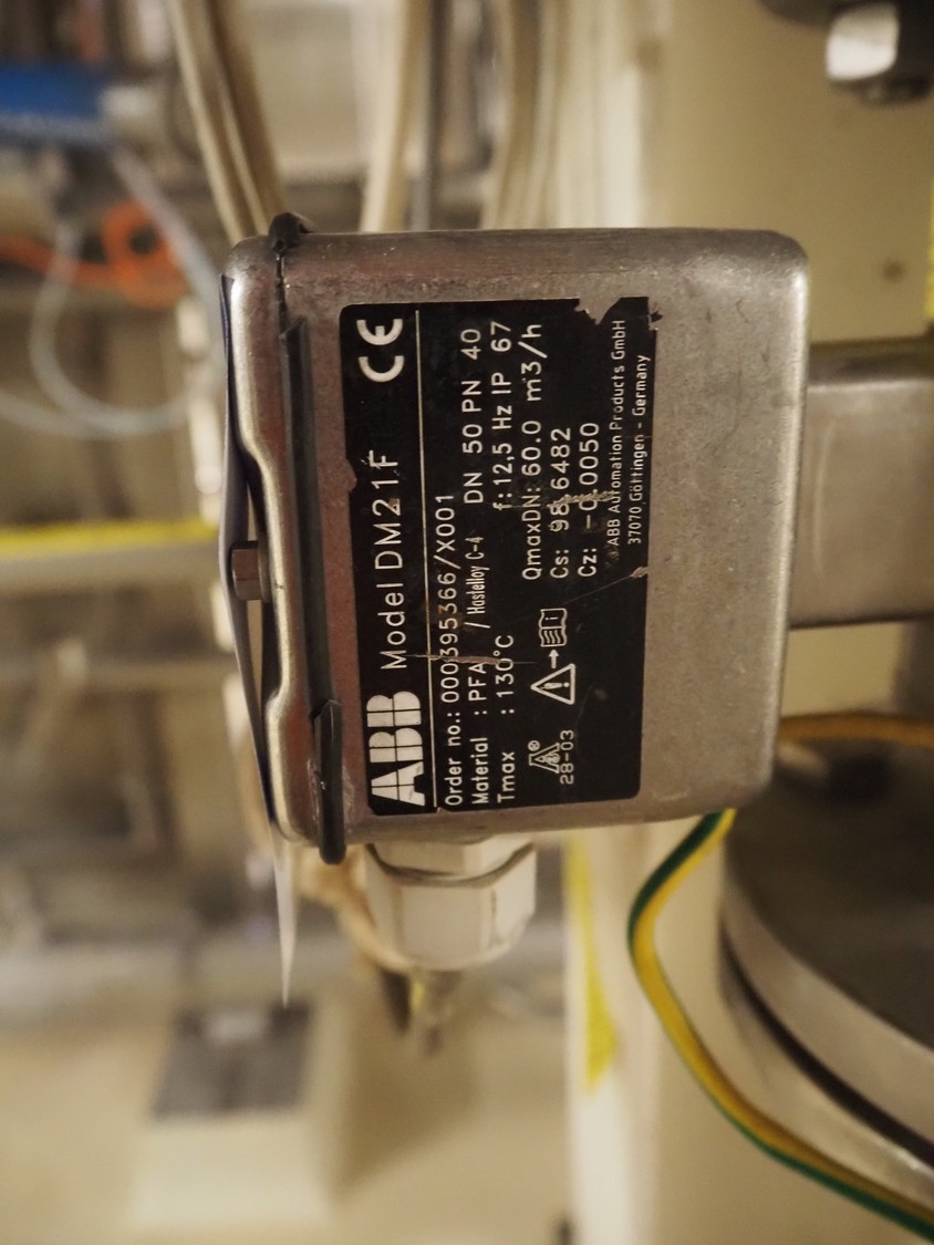ABB flowmeter with transmitter, model: DM21F, serial number: 000240, year of construction: 2005, DN50/PN40, dimensions: 220 mm x 150 mm x 250 mm, 250 mm x 160 mm x 230 mm.