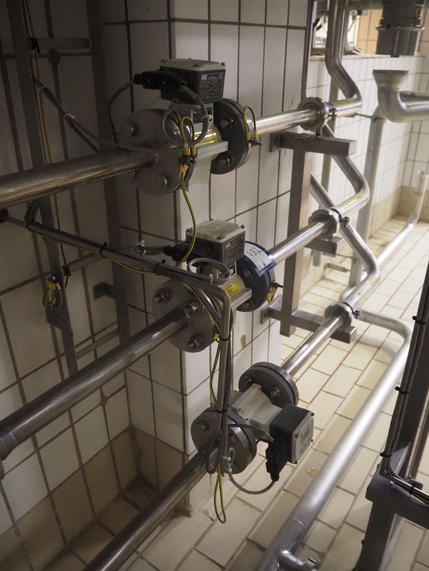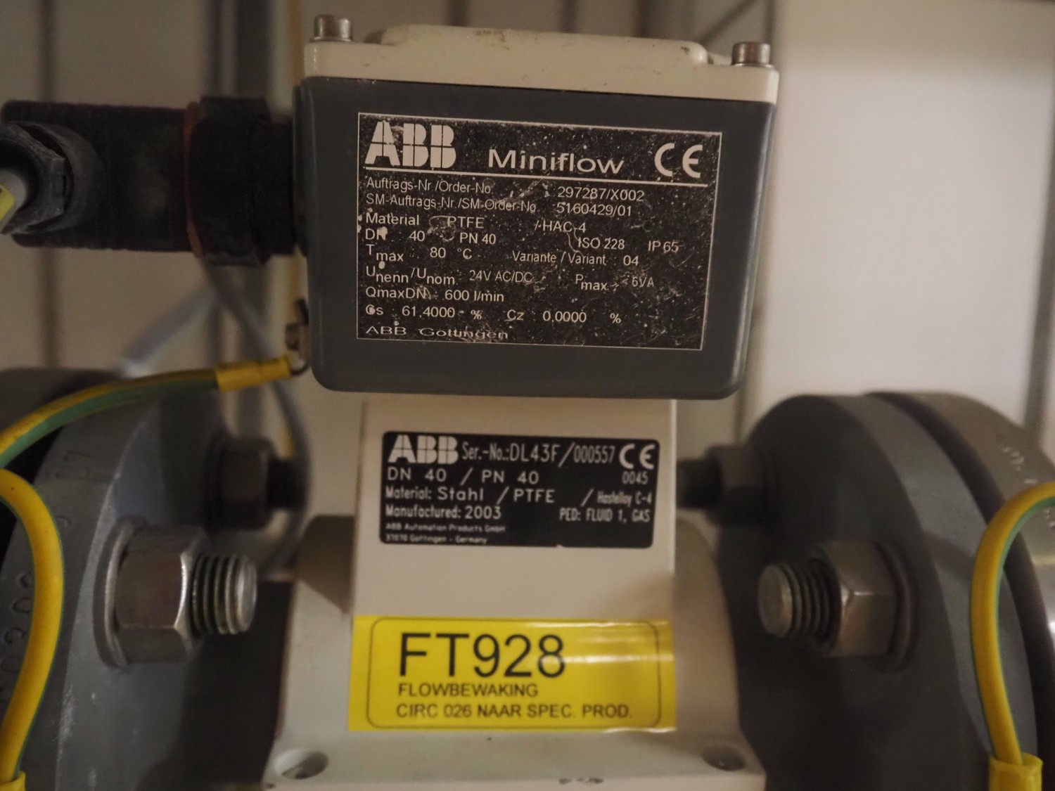 3 ABB flowmeters, model: Miniflow, dimensions: 250 mm x 250 mm x 170 mm.