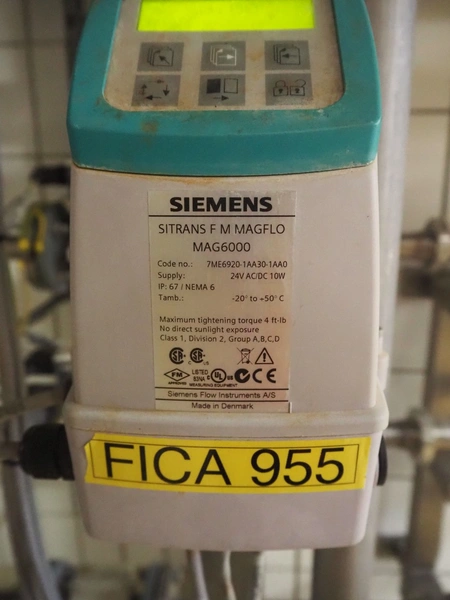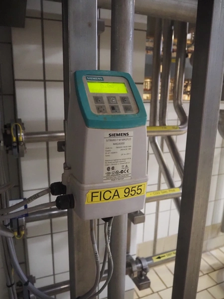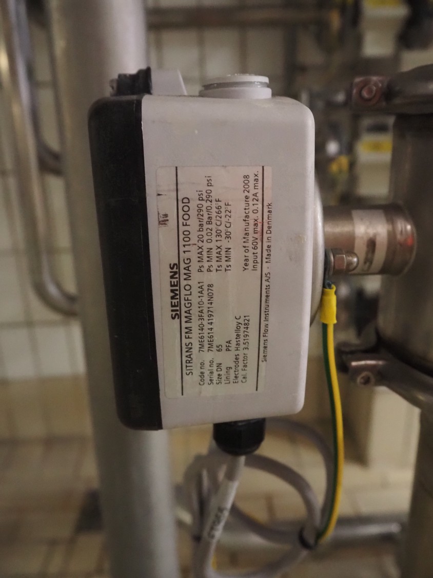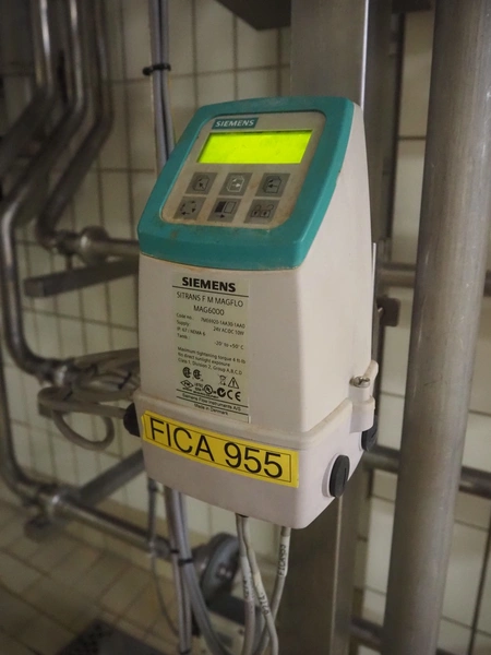 Siemens flowmeter, type: SITRANS FM MAGFLO MAG 1100 FOOD, dimensions flowmeter: 300 mm x 150 mm x 150 mm, dimensions transmitter: 150 mm x 150 mm x 250 mm.