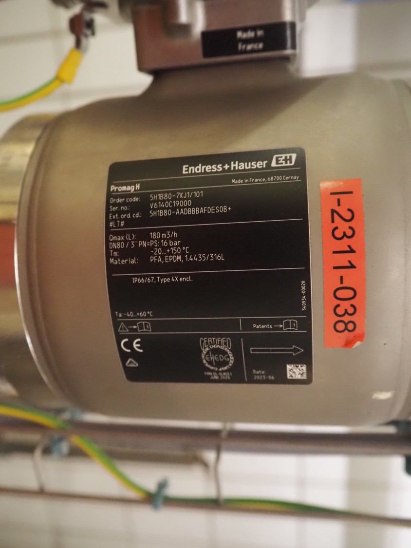 Endress+Hauser flowmeter, type: PromagH, dimensions: 300 mm x 500 mm x 250 mm.