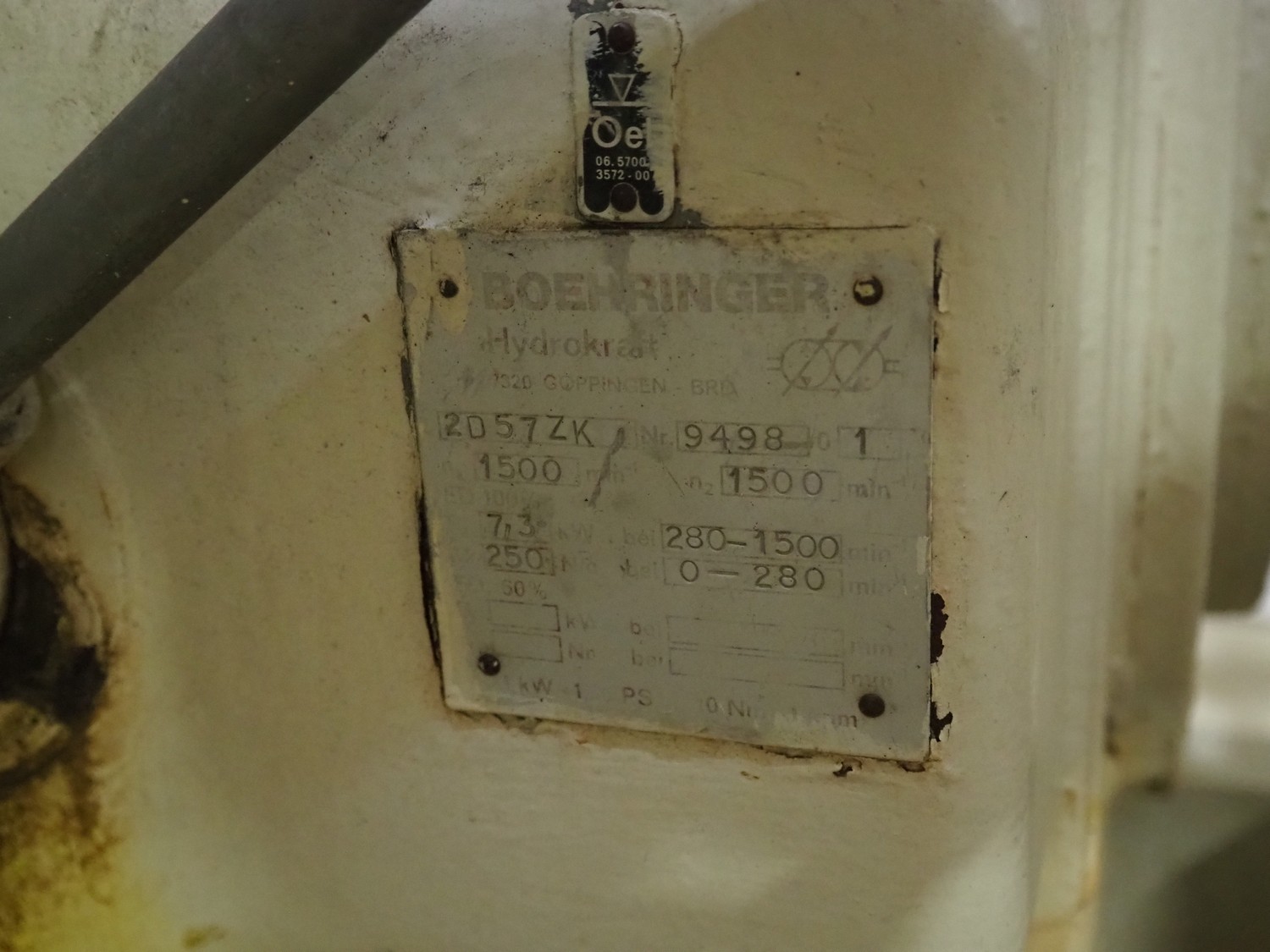 Boehringer lobe pump, type: 2D57ZK, number: 9498, dimensions: 1600 mm x 500 mm x 800 mm.
