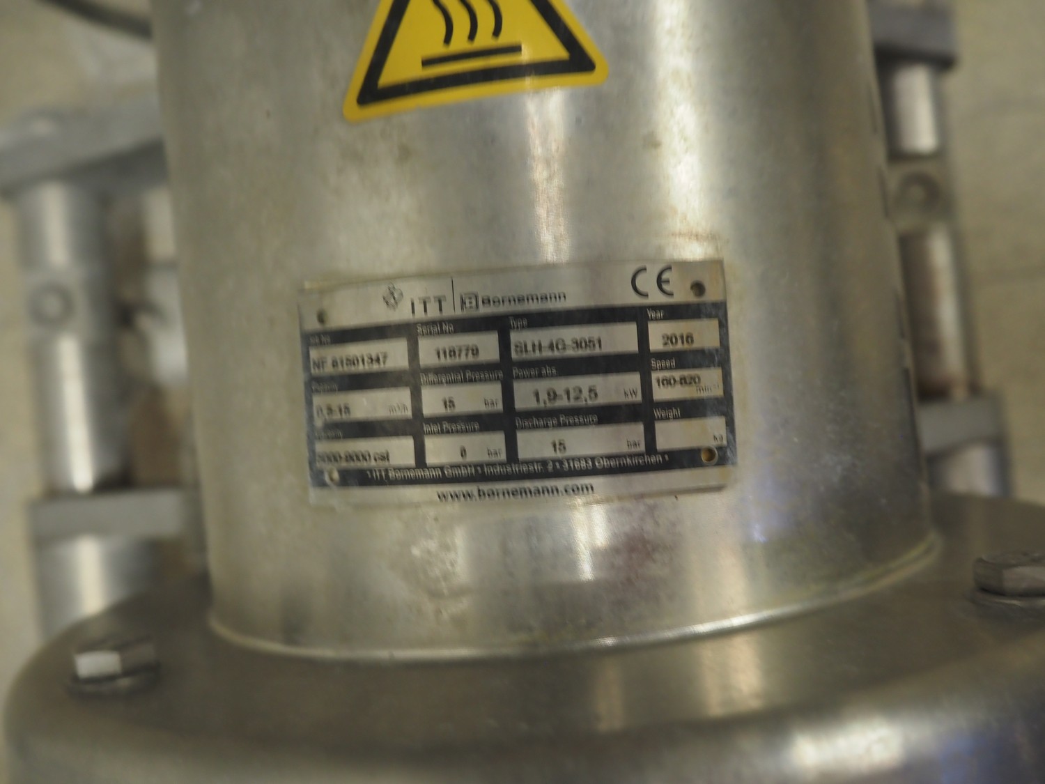 Bornemann twin screw pump, type: SLH-4G-3051, serial number: 118779, year of construction: 2010, capacity: 0.5-15 m³/h, dimensions: 2000 mm x 450 mm x 670 mm.