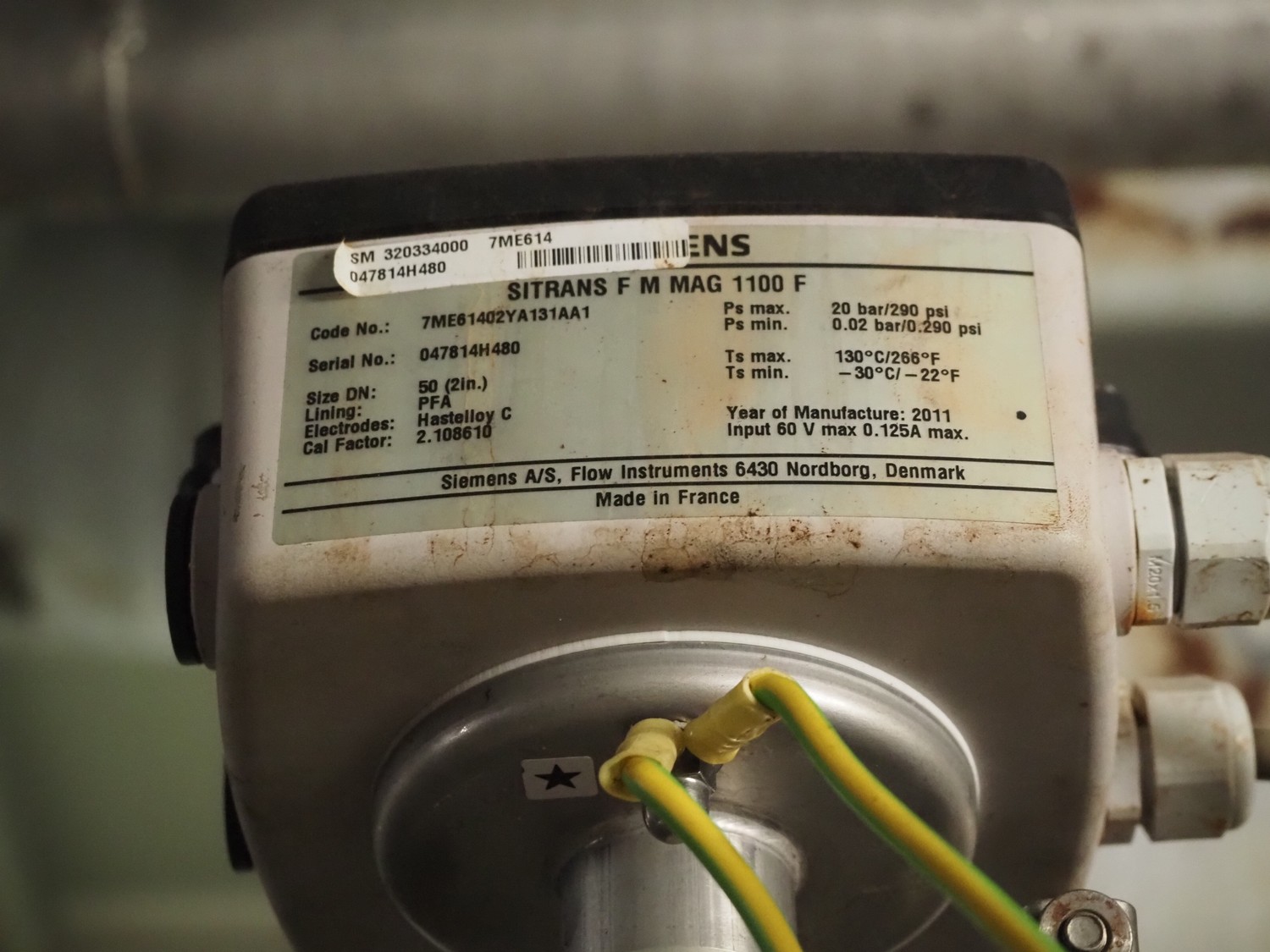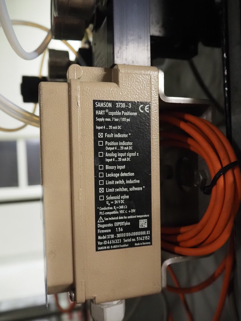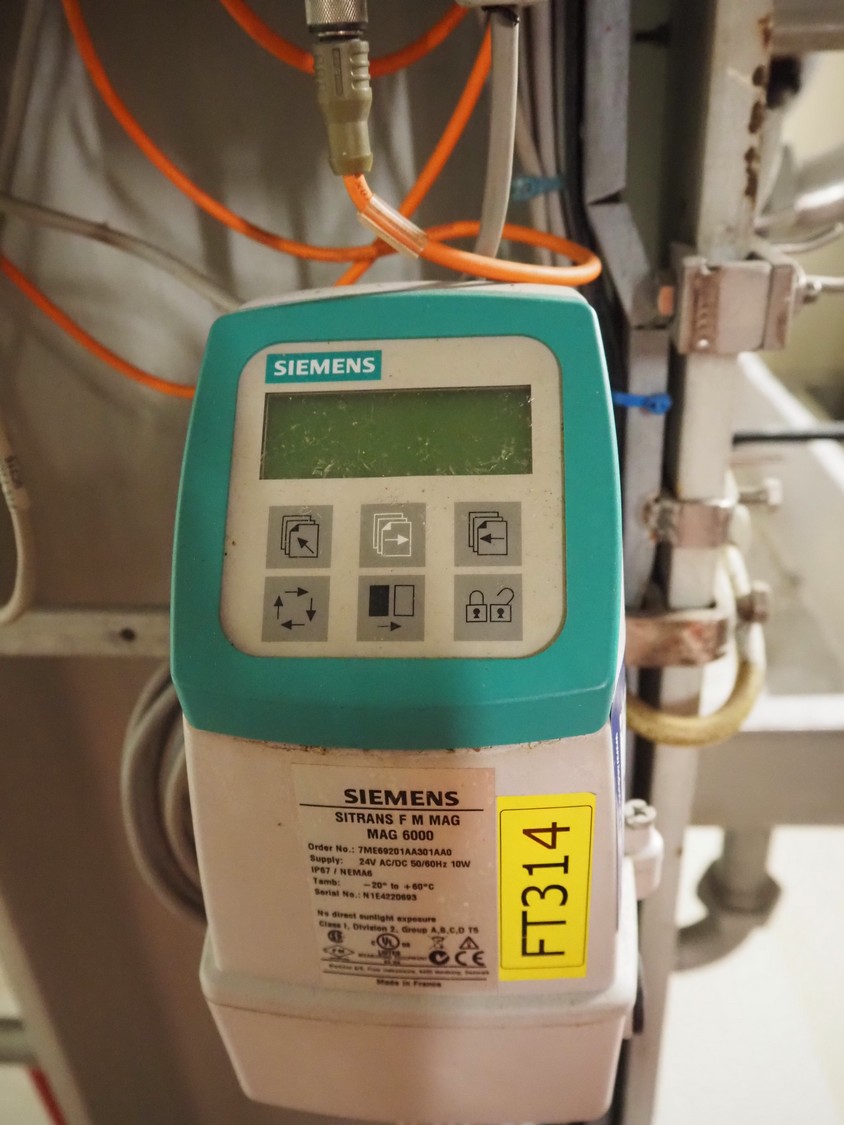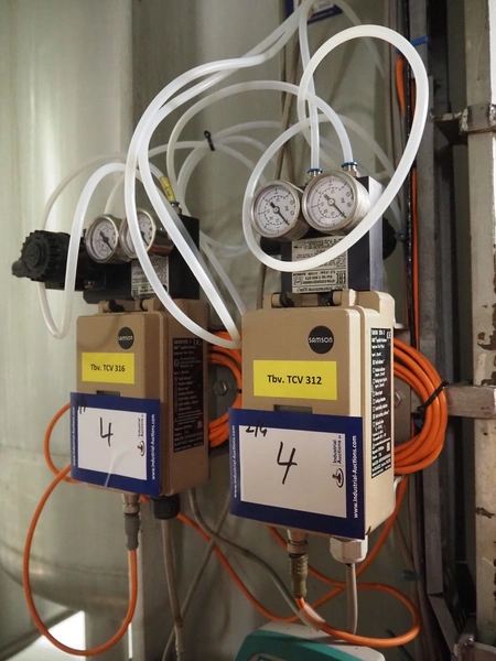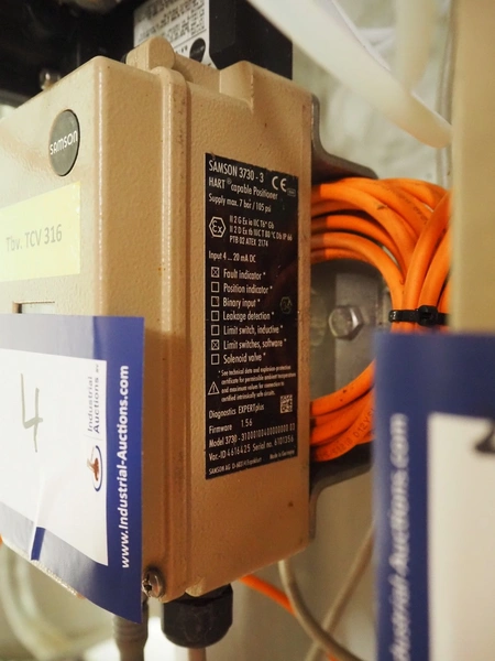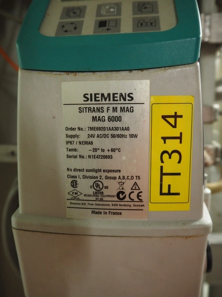 Samson valve with pneumatic diaphragm actuator and electropneumatic positioner, type actuator: 3277, type positioner: 3730-3, dimensions actuator: ø 300 mm x 600 mm with Valve with Air Torque pneumatic actuator, dimensions valve: 400 mm x 200 mm x 600 mm and Siemens flowmeter with microprocessor-based transmitter, model flowmeter: SITRANS F M MAG 1100 G, serial number: 047814H480, DN: 50, model transmitter: SITRANS F M MAG MAG 6000, serial number: N1E4220693, 50/60 Hz, 10 W, Tamb: -20 °C to + 60 °C, dimensions: 150 mm x 130 mm x 230 mm.