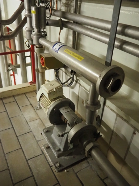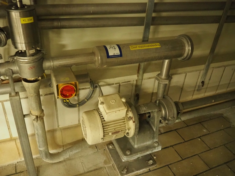 Fristam centrifugal pump with sieve, type: FP1712F, dimensions: 1100 mm x 300 mm x 1100 mm. Including 2 Hovap valves.