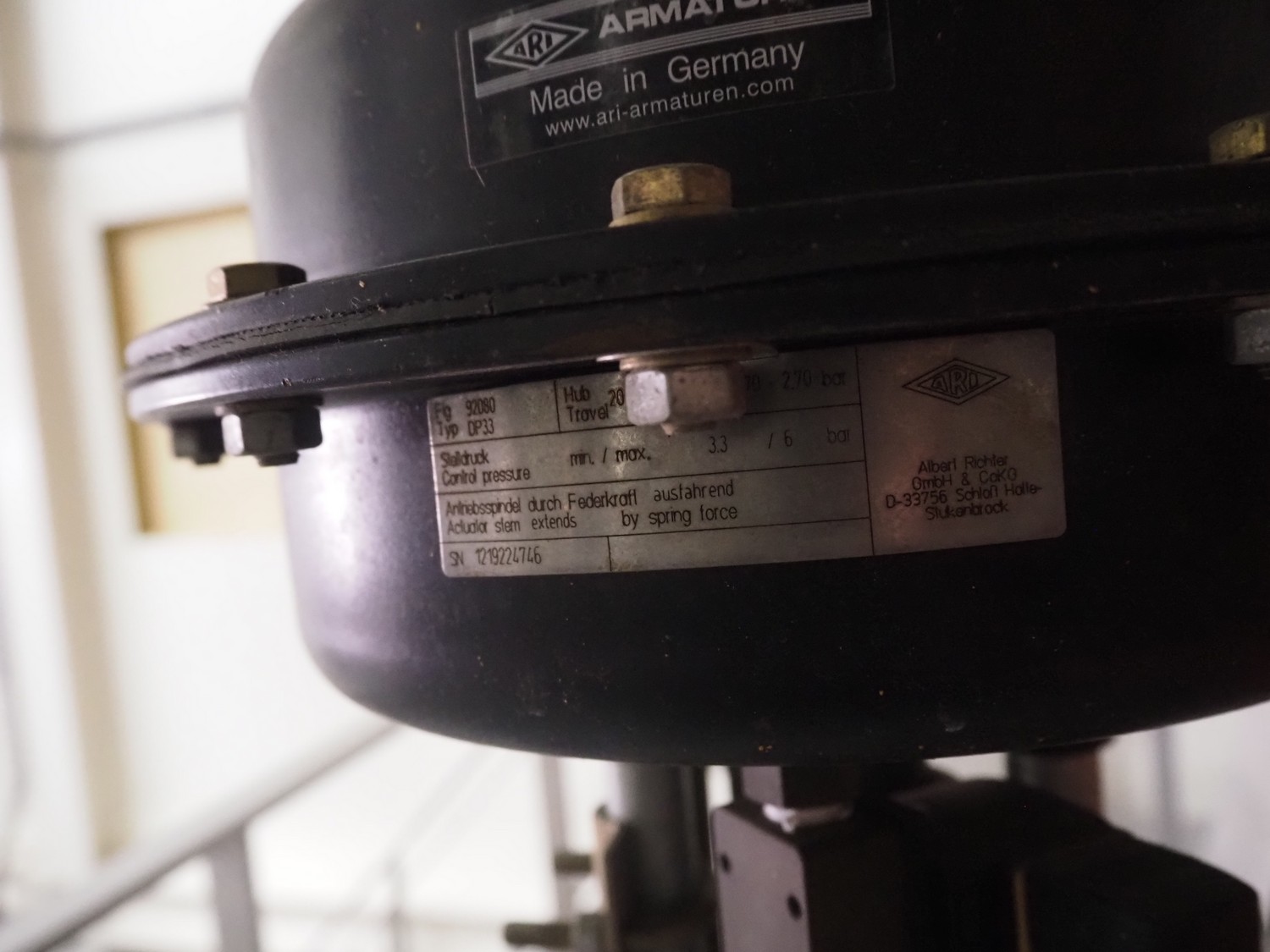 ARI Armaturen pneumatic valve, type: DP33, serial number: 1219224746, dimensions: ø 300 mm x 530 mm.