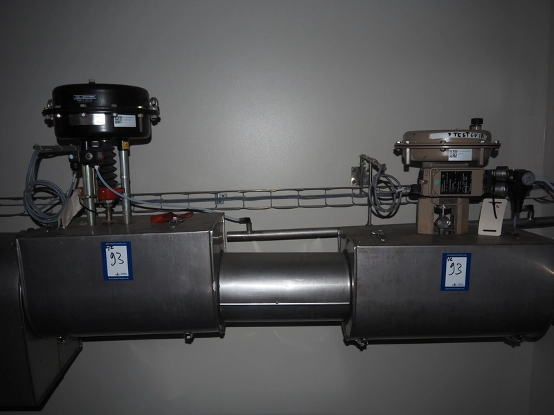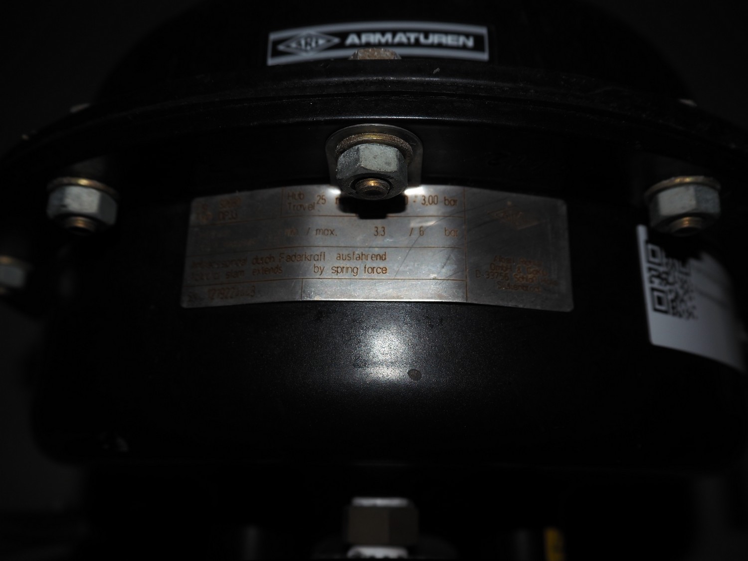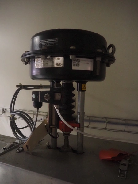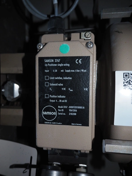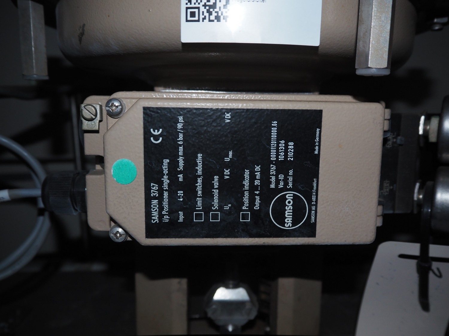 Samson valve with pneumatic diaphragm actuator and electropneumatic positioner, type actuator: 3277, type positioner: 3767, dimensions: 400 mm x 300 mm x 500 mm and ARI Armaturen pneumatic valve, type: DP33, serial number: 1219224448, dimensions: ø 300 mm x 530 mm.