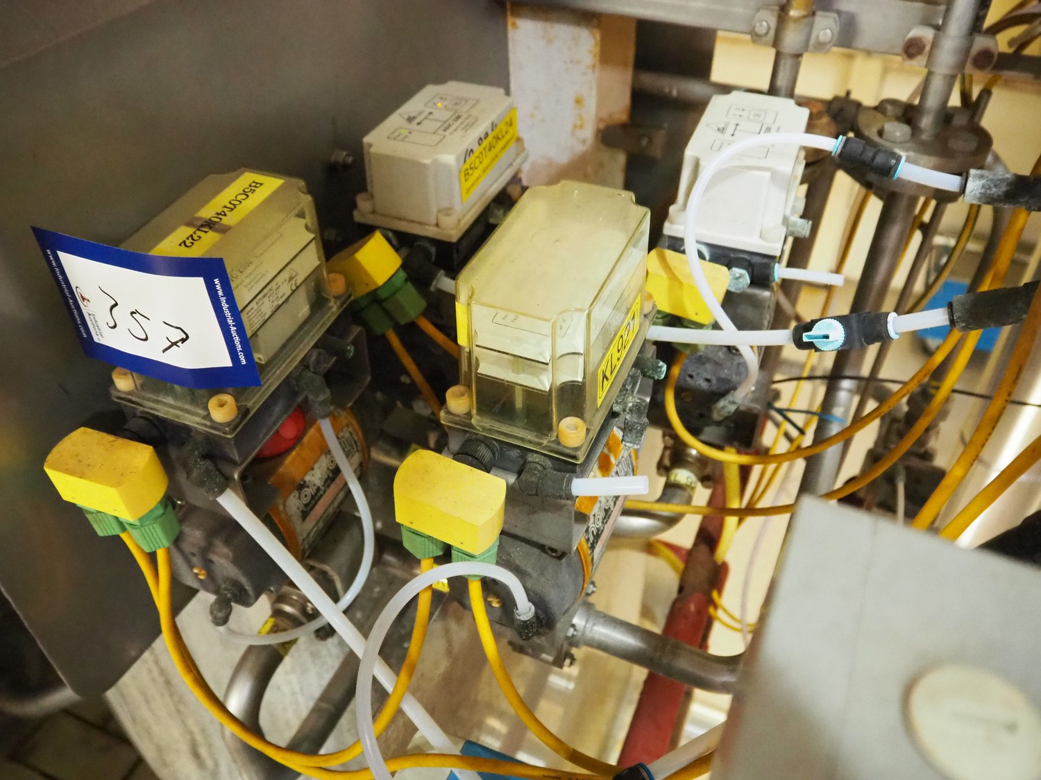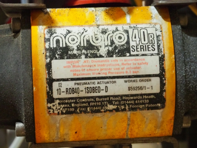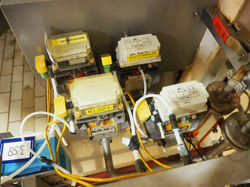 4 valves with Sitomatic AS-Interface valve controllers and Norbro pneumatic actuators, dimensions: (4x) 200 mm x 100 mm x 200 mm.