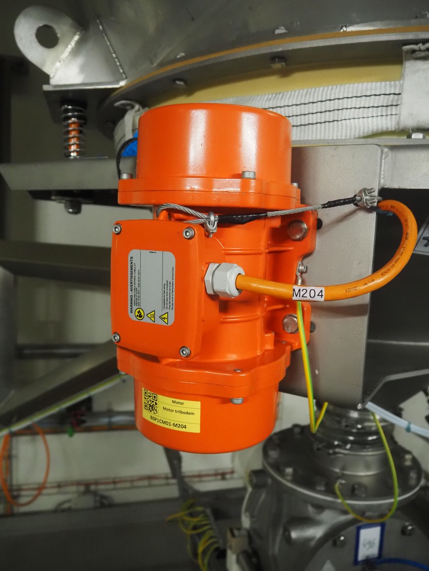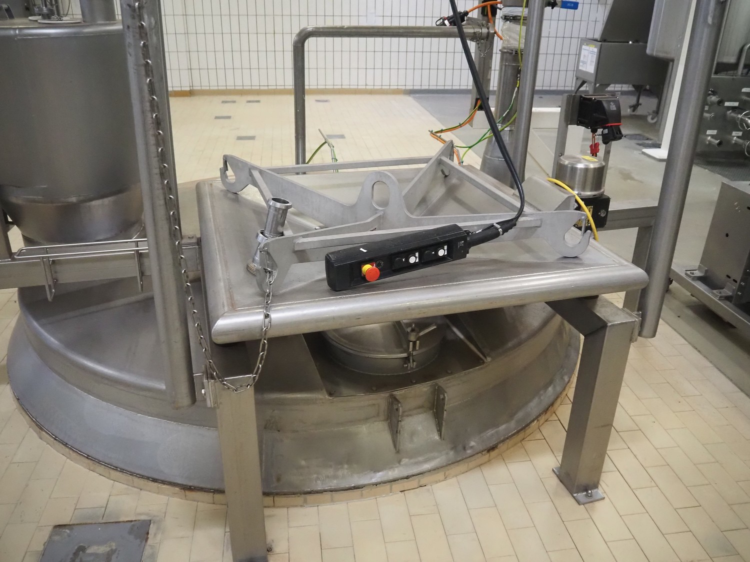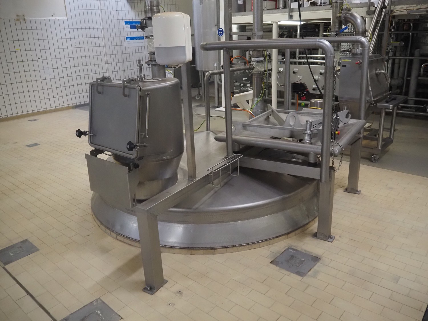 S/s powder silo with vibrating base, dimensions: ø 2600 mm x 2800 mm.