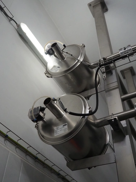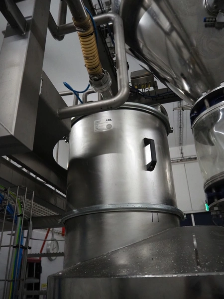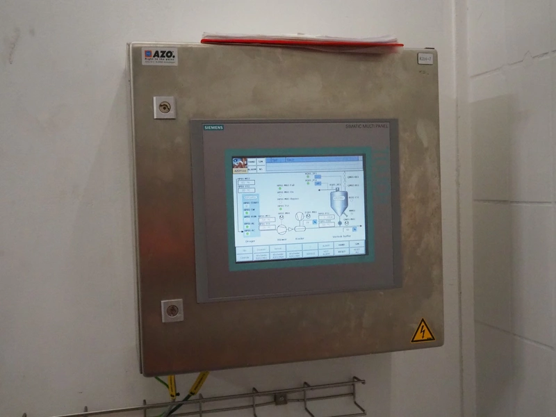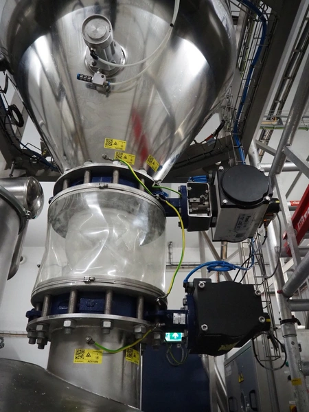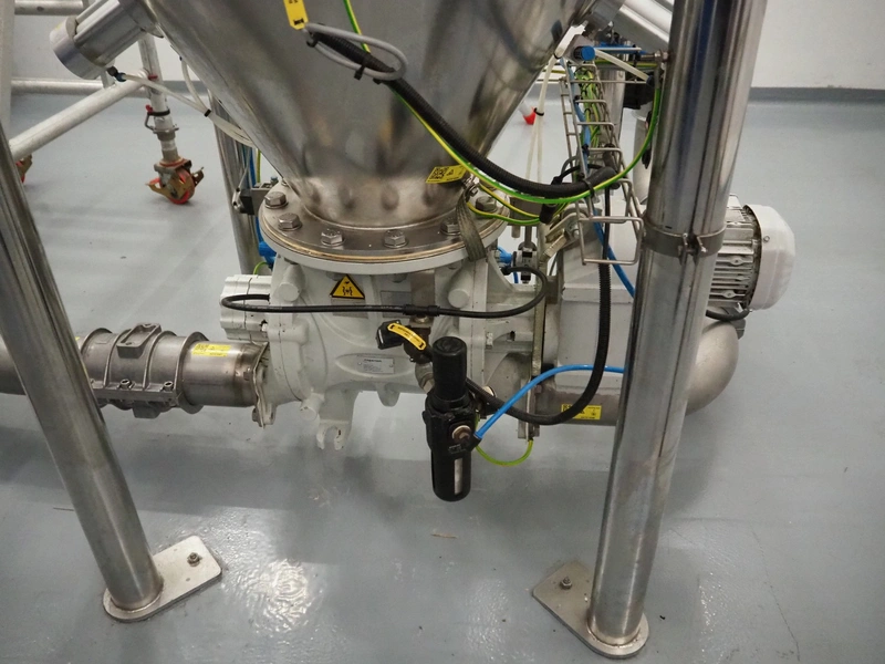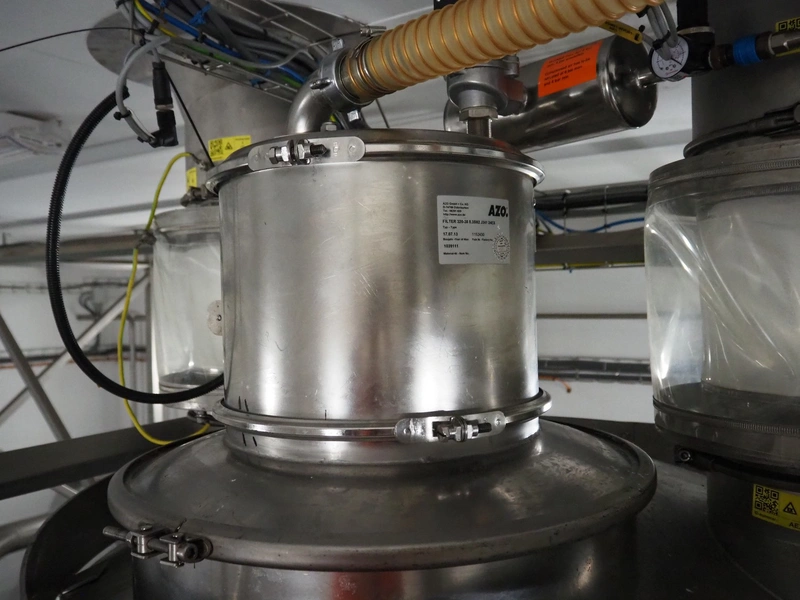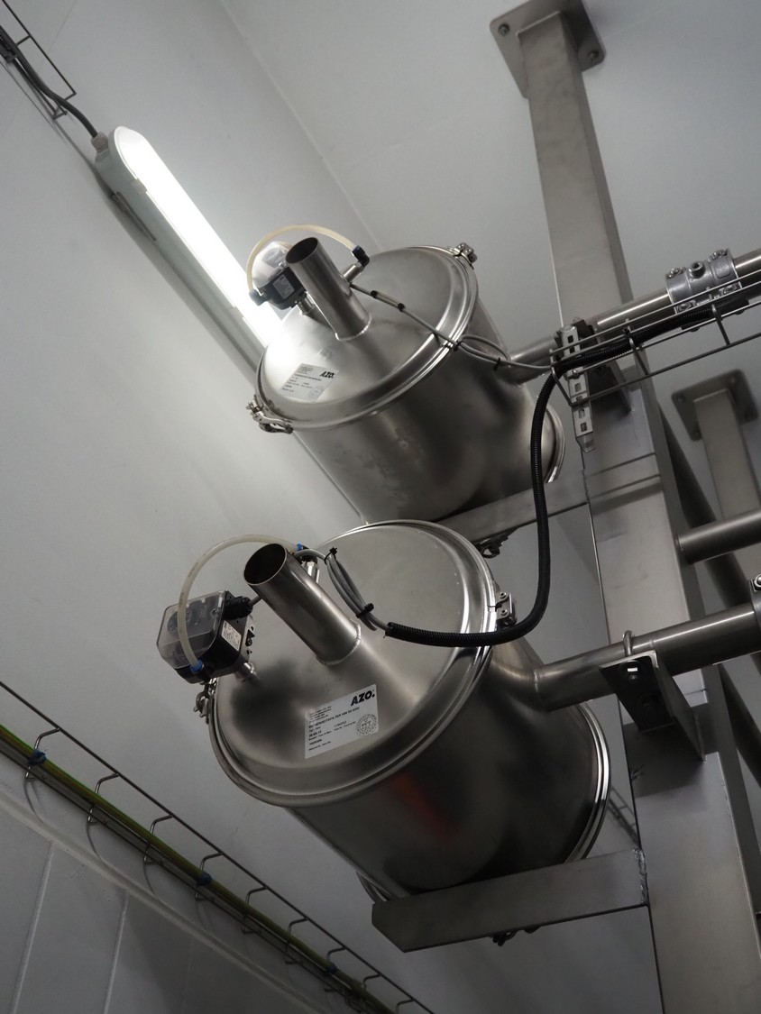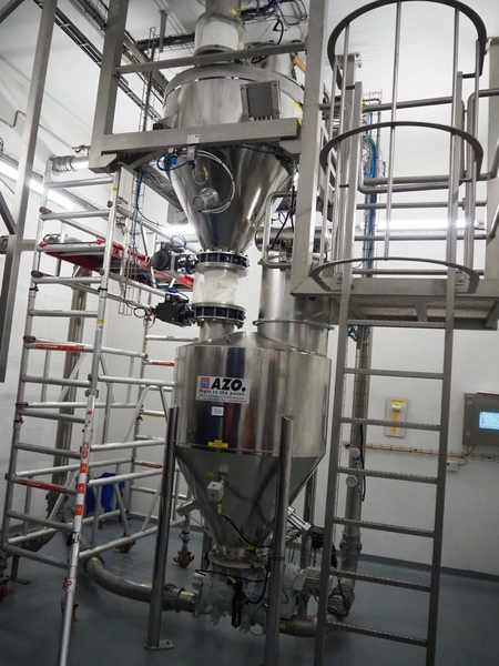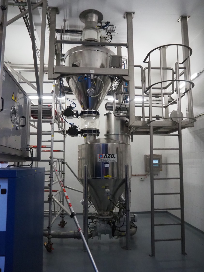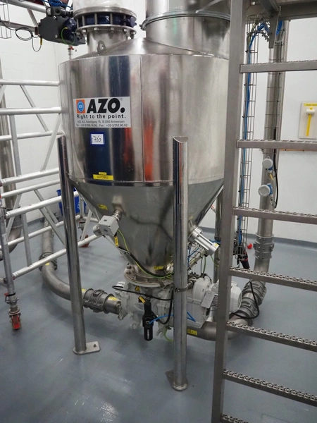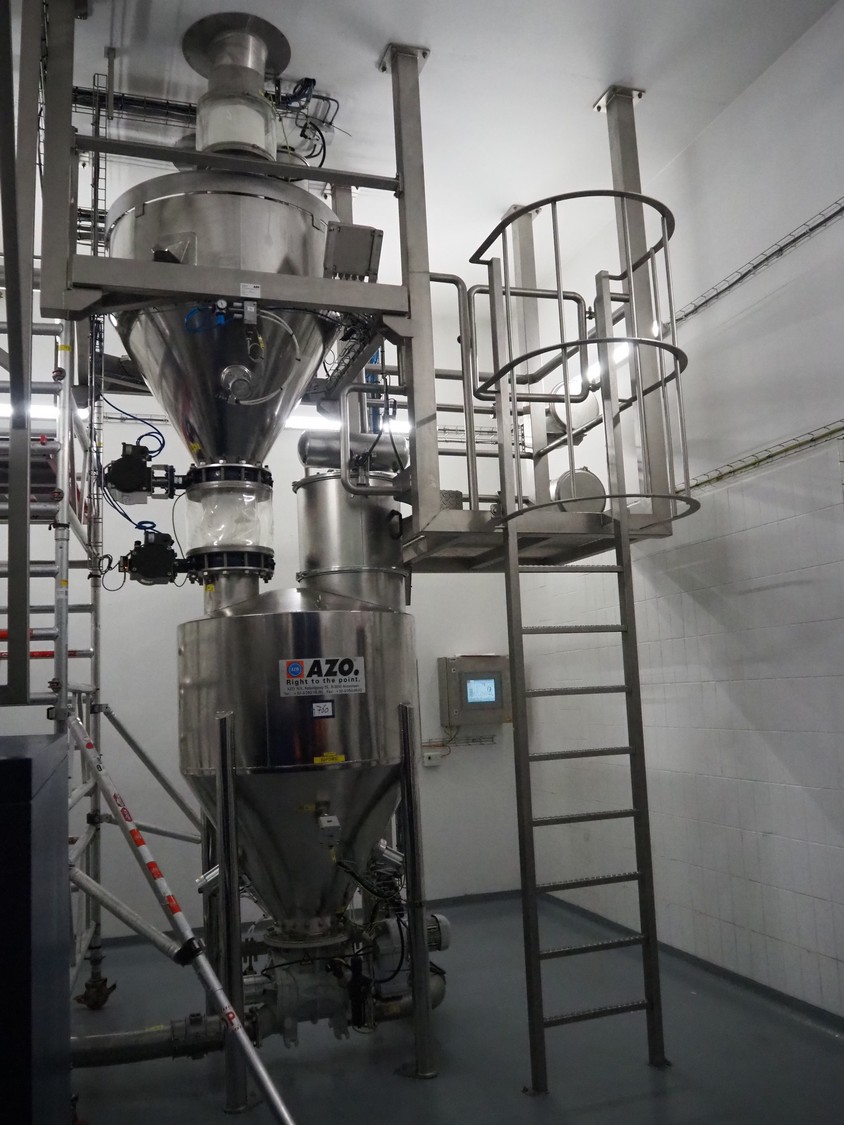 AZO GmbH + Co. KG pneumatic conveying system with 2 way valves including s/s platform, total dimensions: 2400 mm x 3100 mm x 4500 mm.