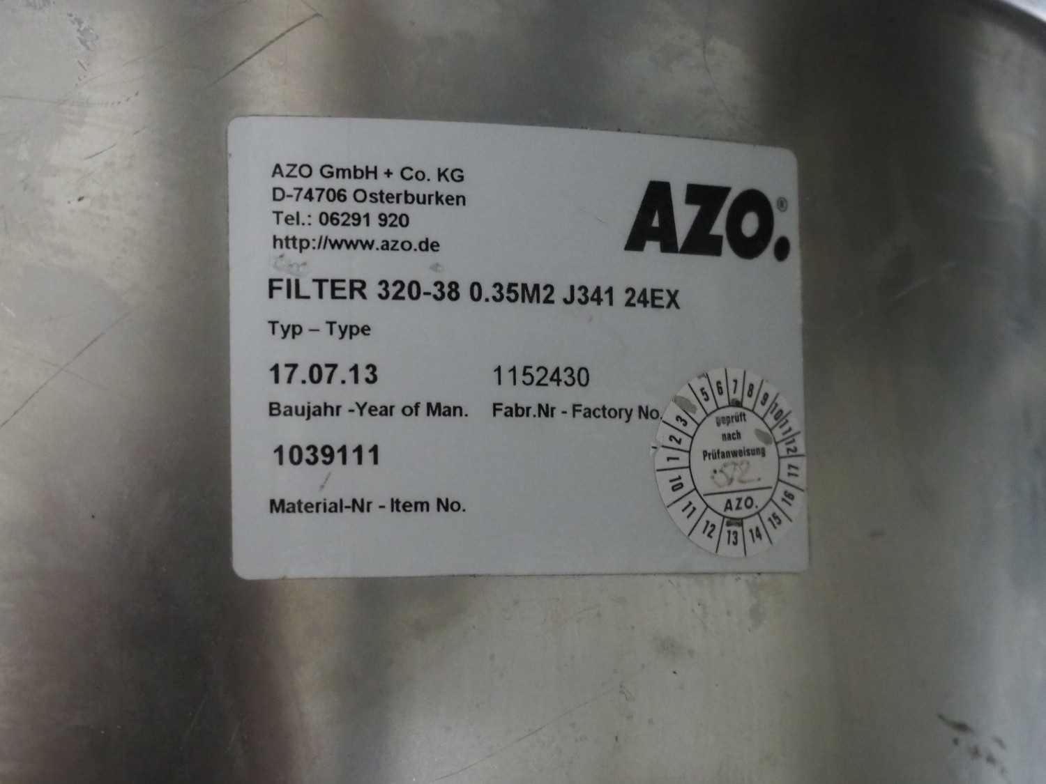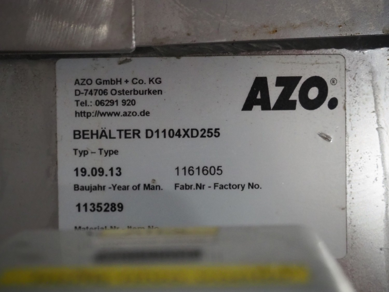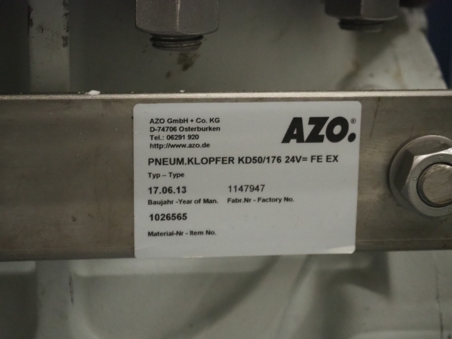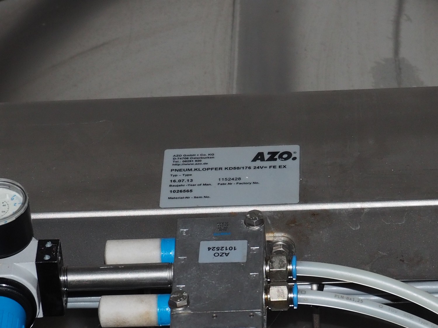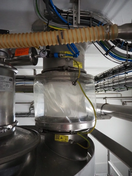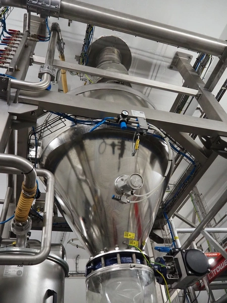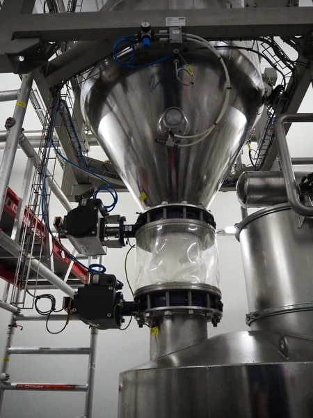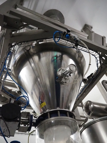 AZO GmbH + Co. KG pneumatic conveying system with 2 way valves including s/s platform, total dimensions: 2400 mm x 3100 mm x 4500 mm.