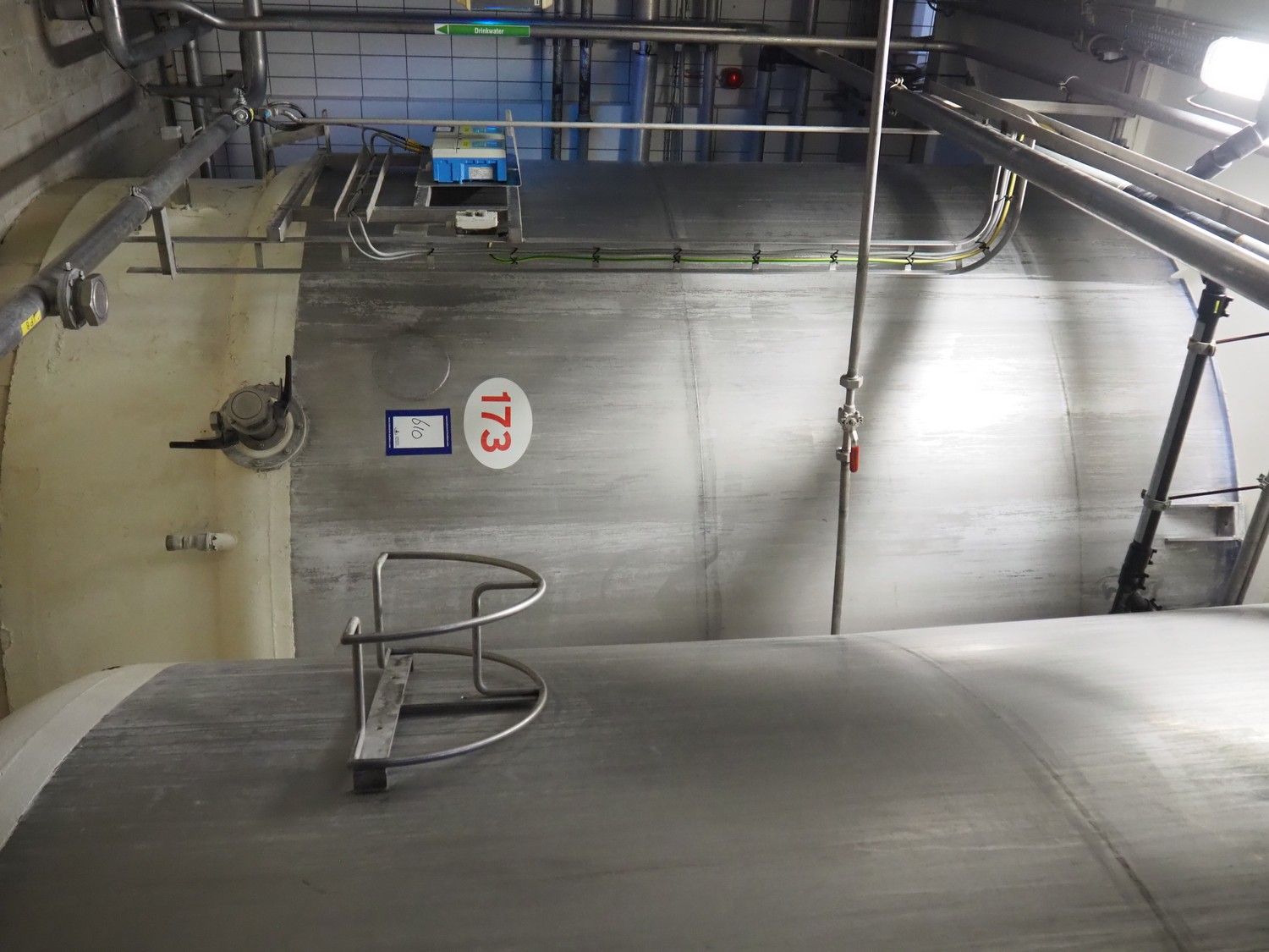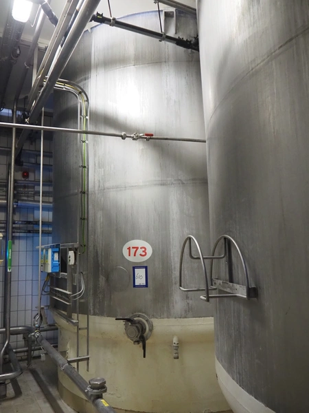 S/s double jacketed tank with agitator, dimensions: ø 3400 mm x 5600 mm.
