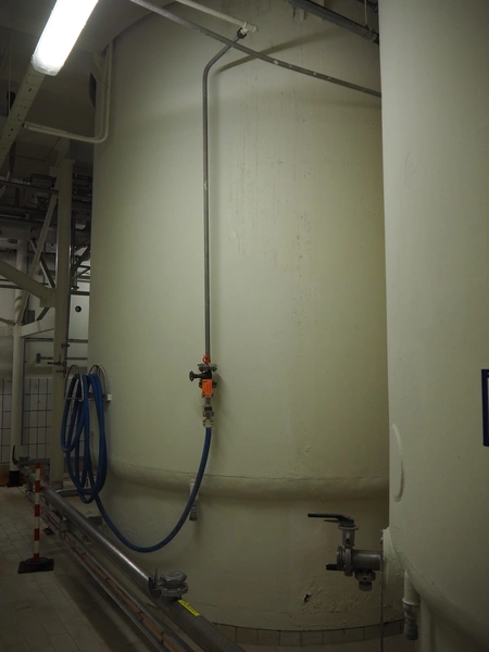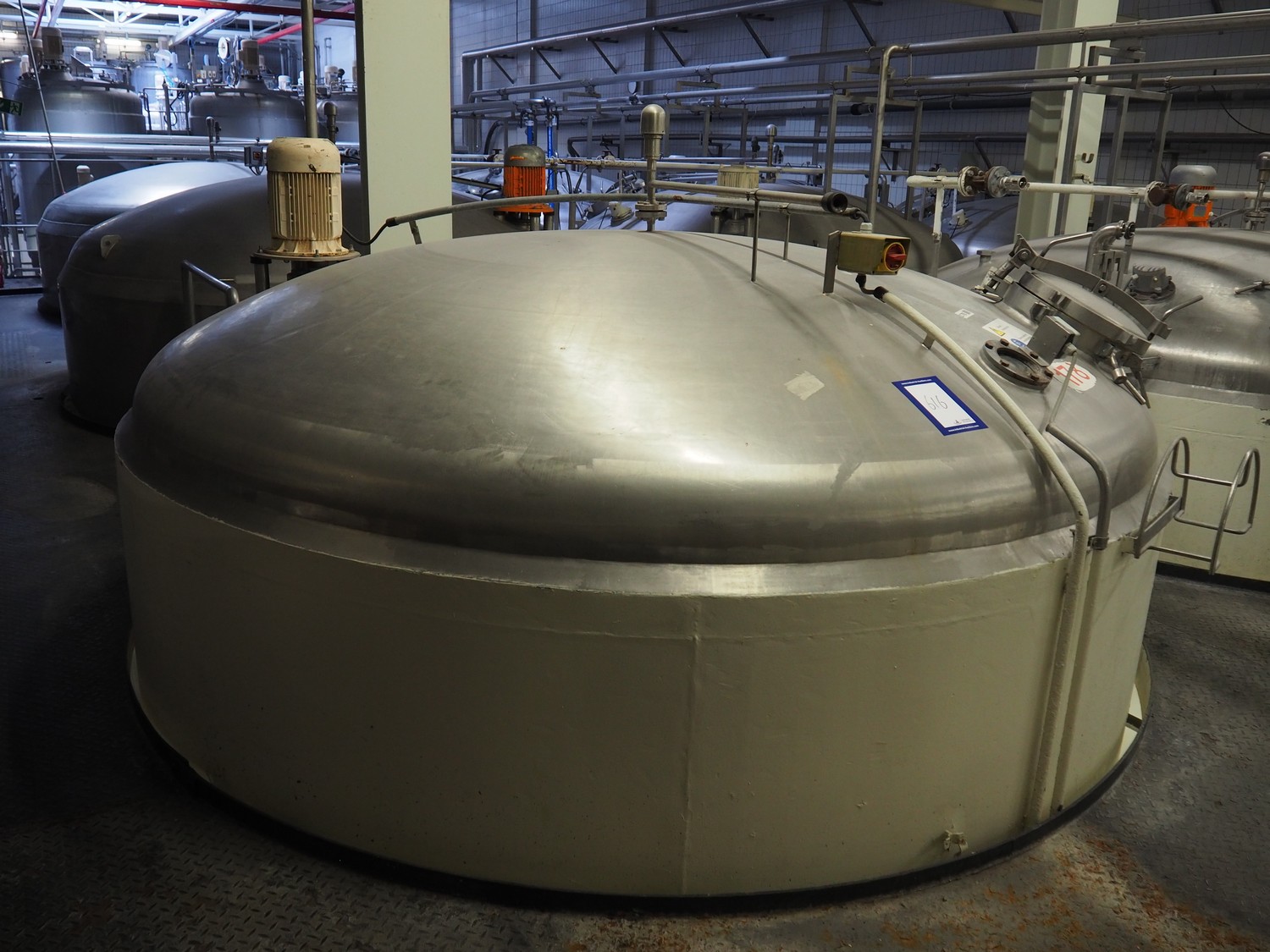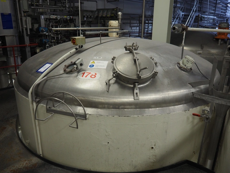 S/s double jacketed tank with agitator, dimensions: ø 3400 mm x 5650 mm.
