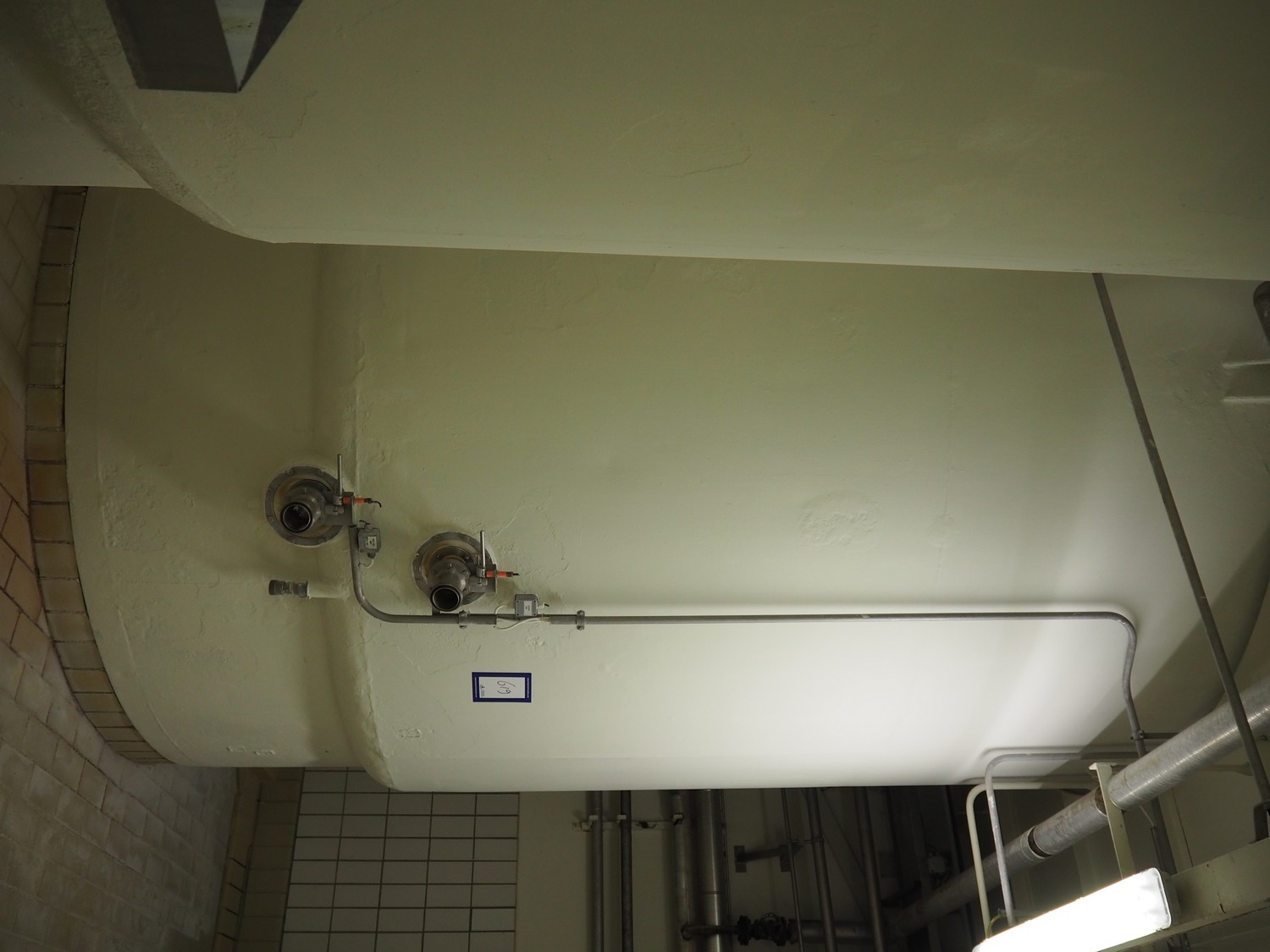 S/s double jacketed tank with agitator, dimensions: ø 3400 mm x 5650 mm.