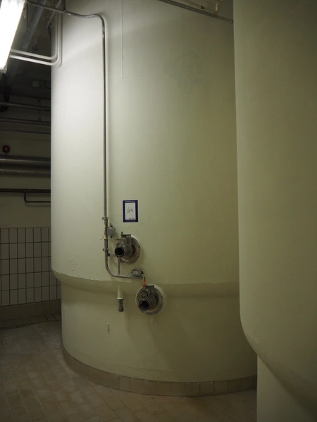 S/s double jacketed tank with agitator, dimensions: ø 3400 mm x 5650 mm.