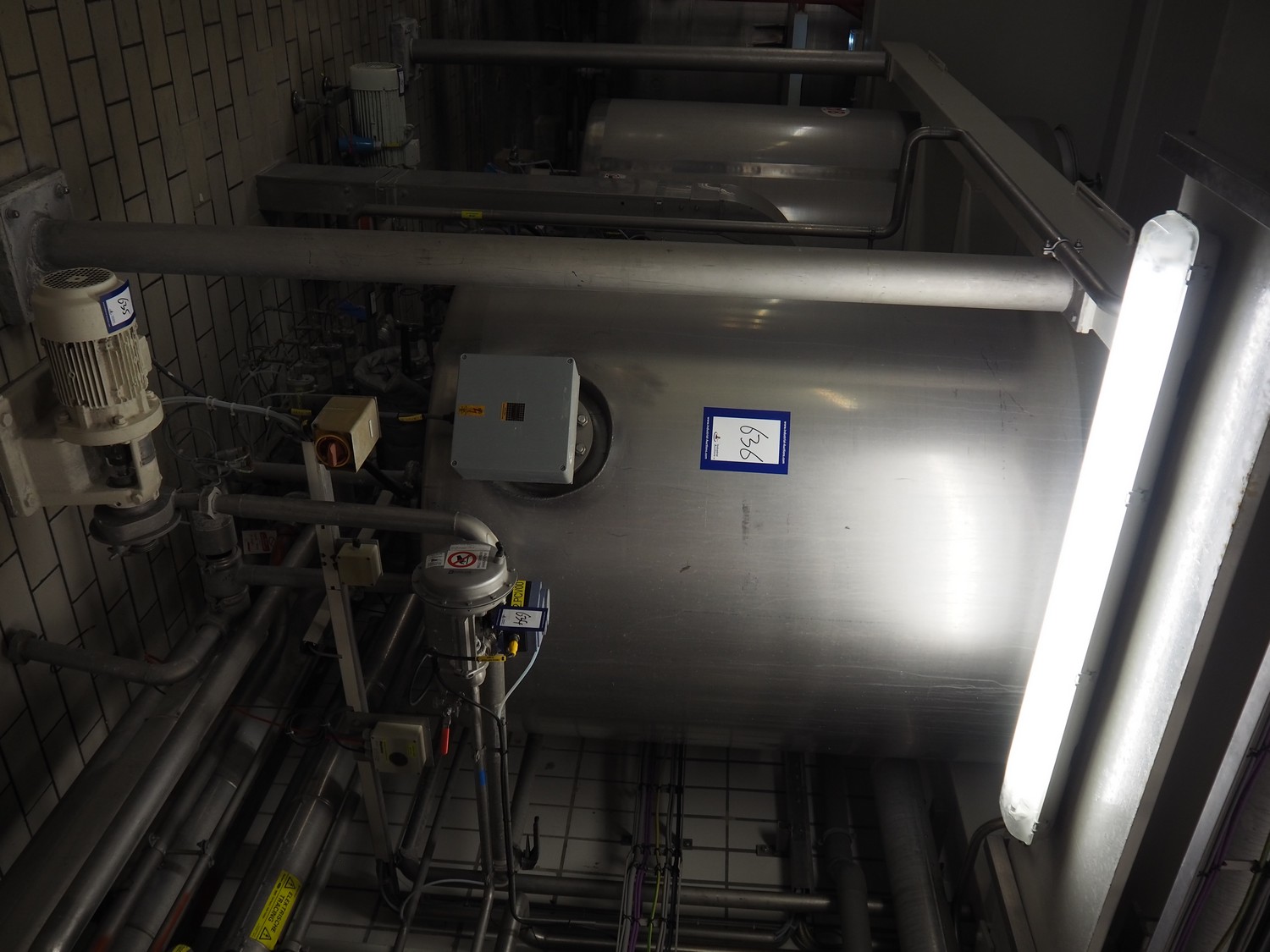 S/s double jacketed tank, dimensions: ø 1300 mm x 2400 mm.