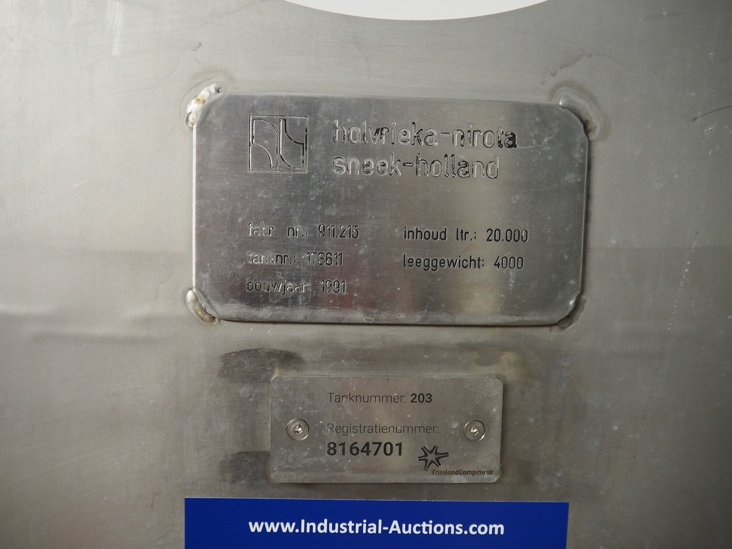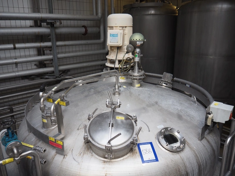 Holvrieka-Nirota s/s double jacketed tank with agitator, fabrication number: 911.215, year of construction: 1991, volume: 20000 litres, empty weight: 4000 kg, dimensions: ø 2650 mm x 7600 mm.
