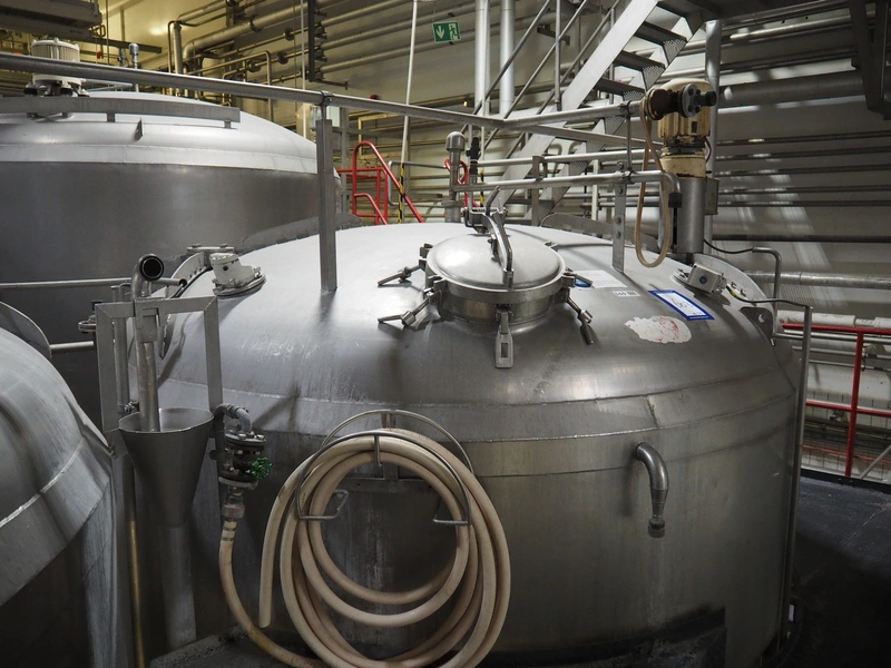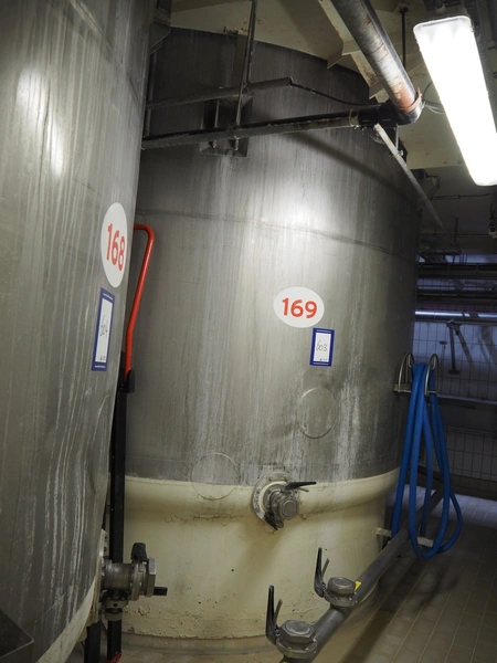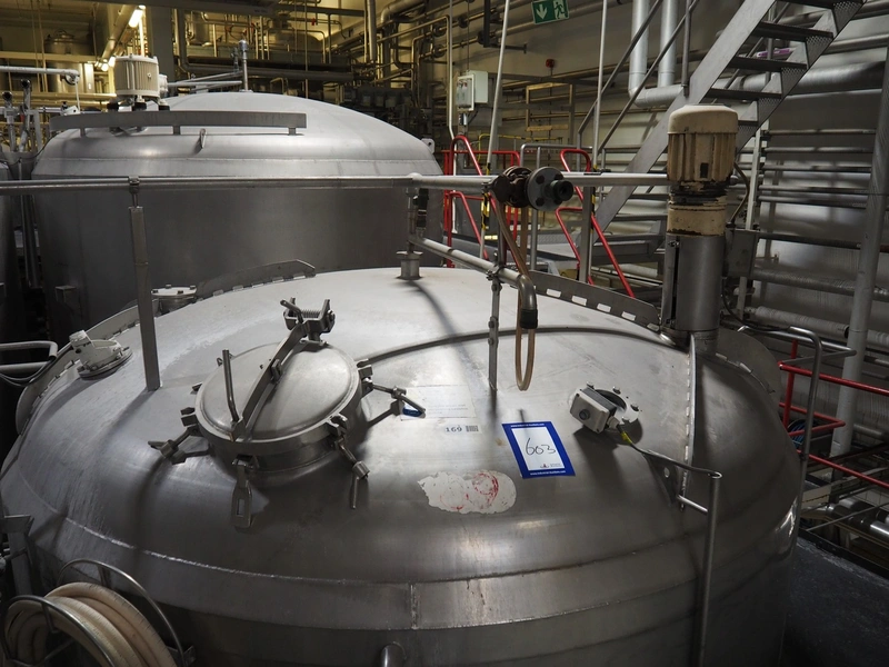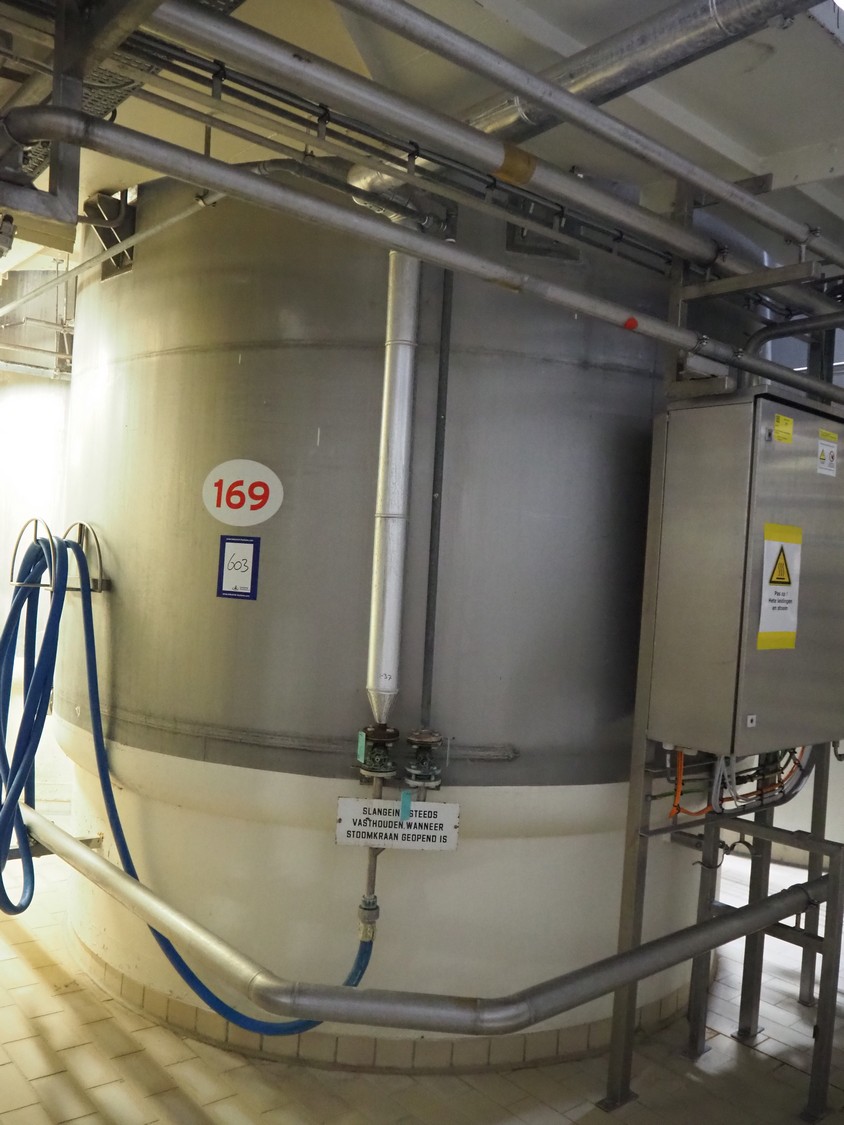 S/s double jacketed tank with agitator, dimensions: ø 3200 mm x 5100 mm.