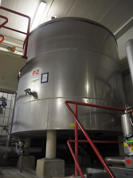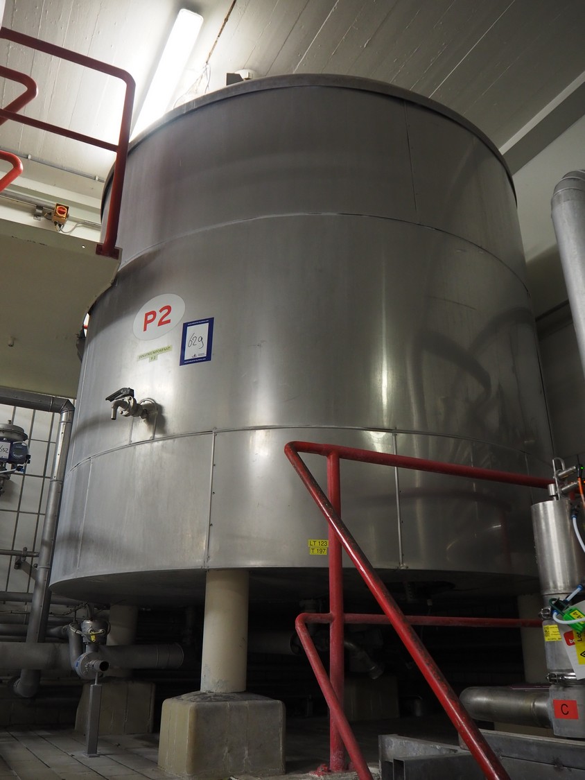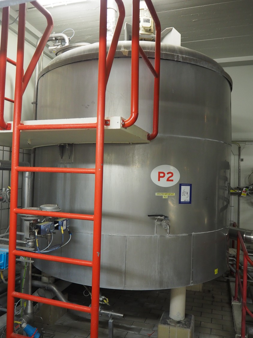 S/s insulated tank with agitator used for sodium phosphate, dimensions: ø 2400 mm x 3800 mm.