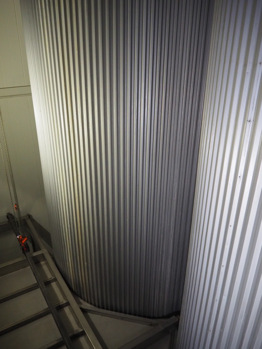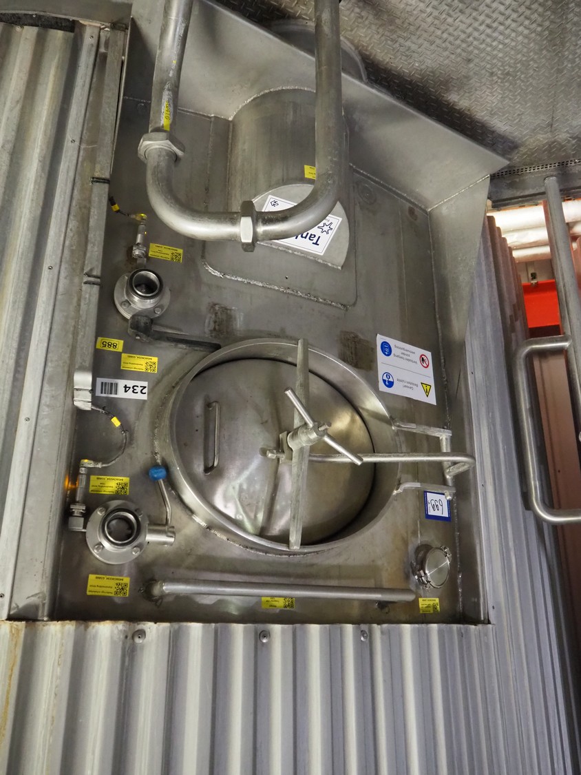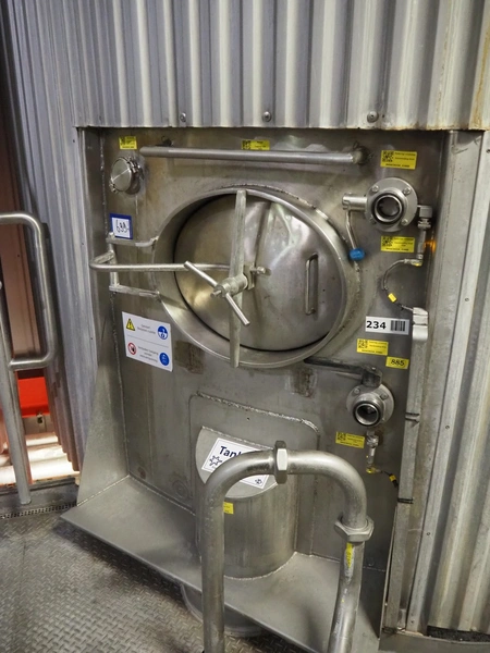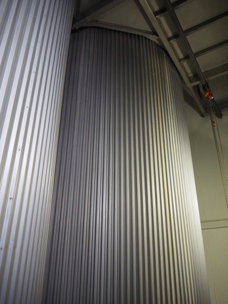 S/s insulated tank, dimensions: ø 3800 mm x 8000 mm.