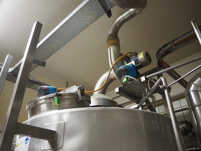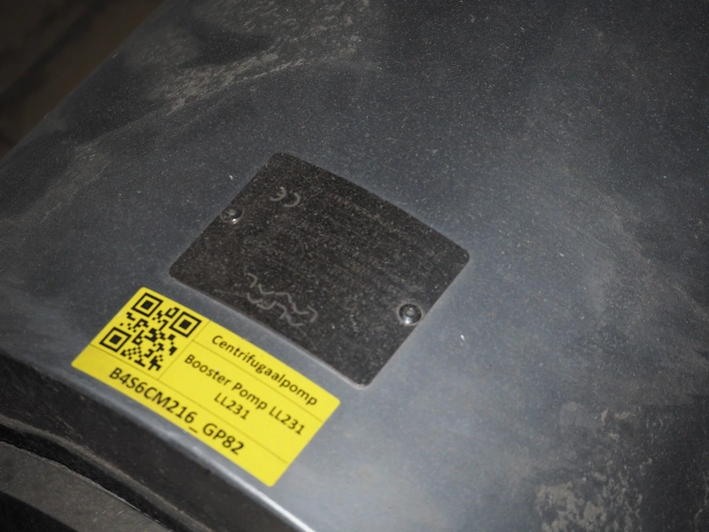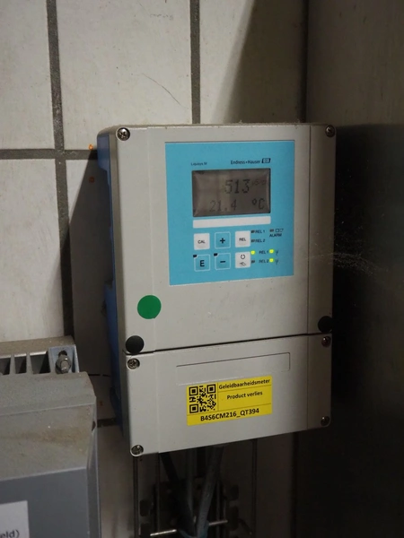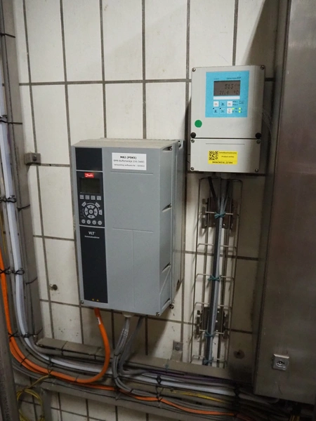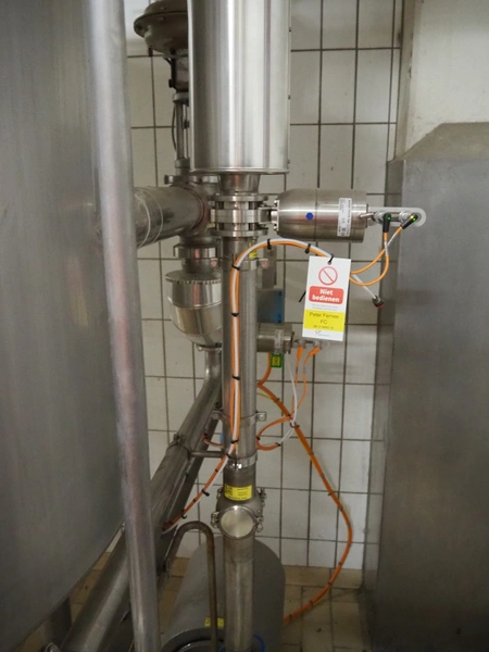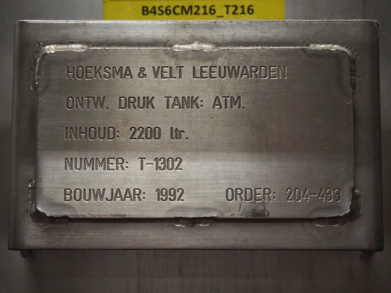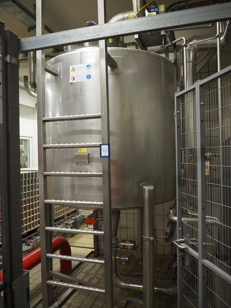 Buffer installation consisting of s/s Hoeksma&Velt Leeuwarden tank, volume: 2200 litres, Alfa Laval centrifugal pump, various valves and Dansfoss frequency converter, dimensions tank: ø 1400 mm x 2800 mm.