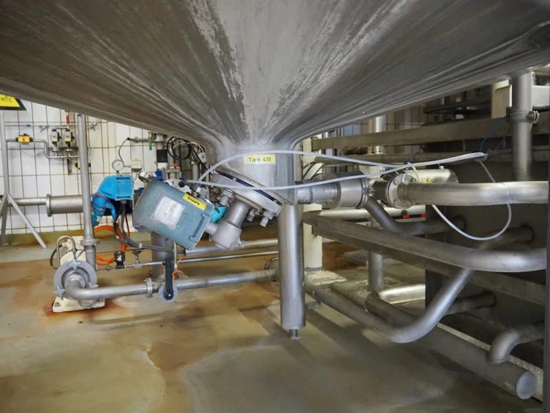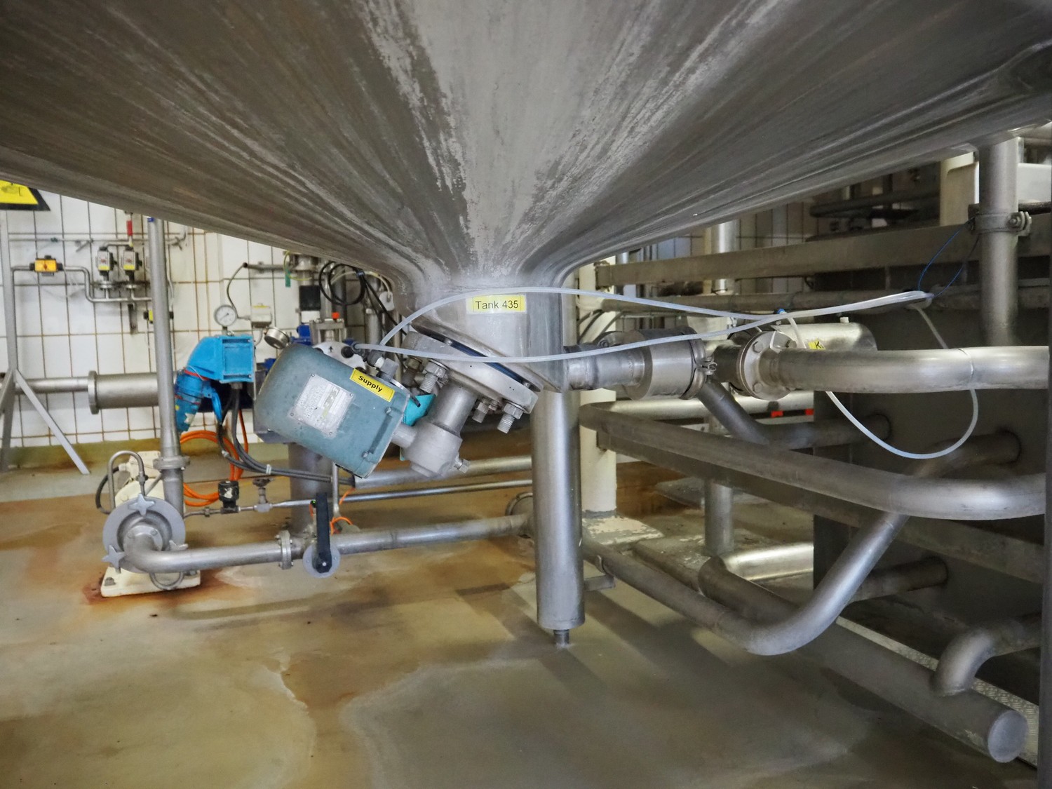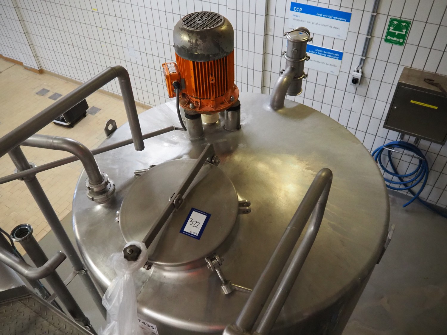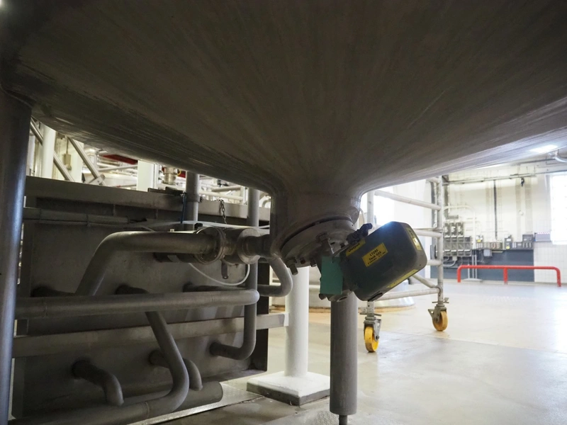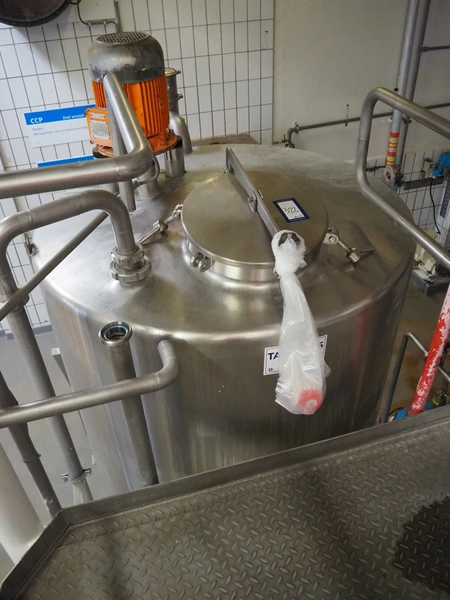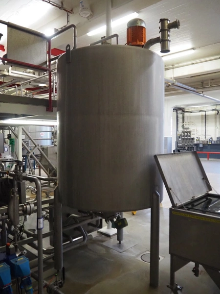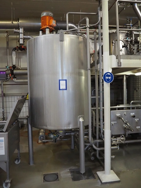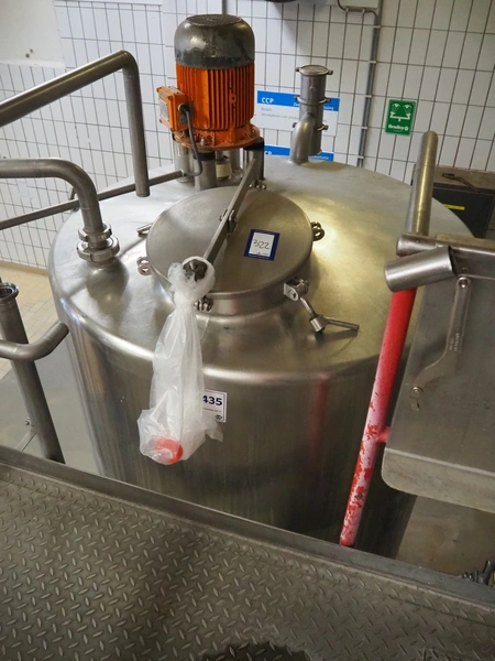S/s tank with agitator, tank dimensions: Ø 1400 mm x 1800 mm, total dimensions: Ø 1400 mm x 3500 mm.