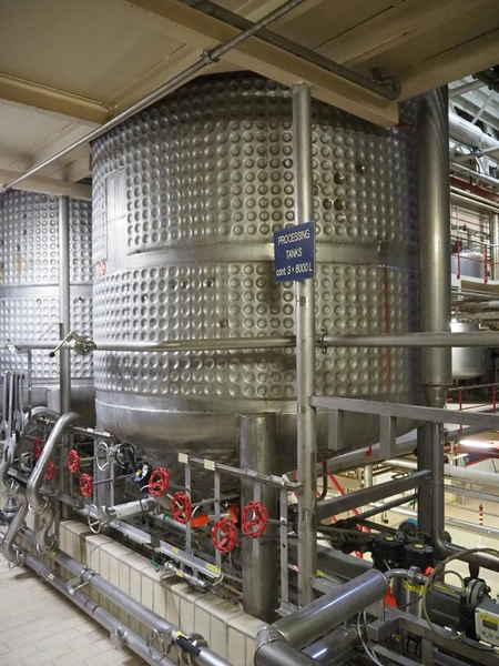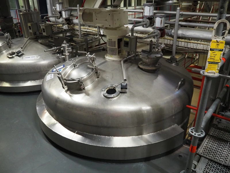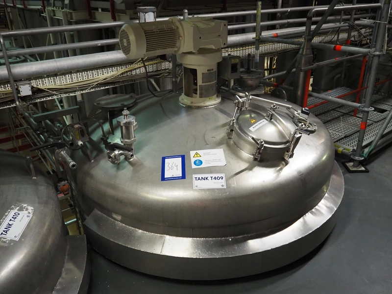 Terlet s/s double jacketed tank with agitator, volume: 8000 litre, dimensions: Ø 2000 mm x 4600 mm.